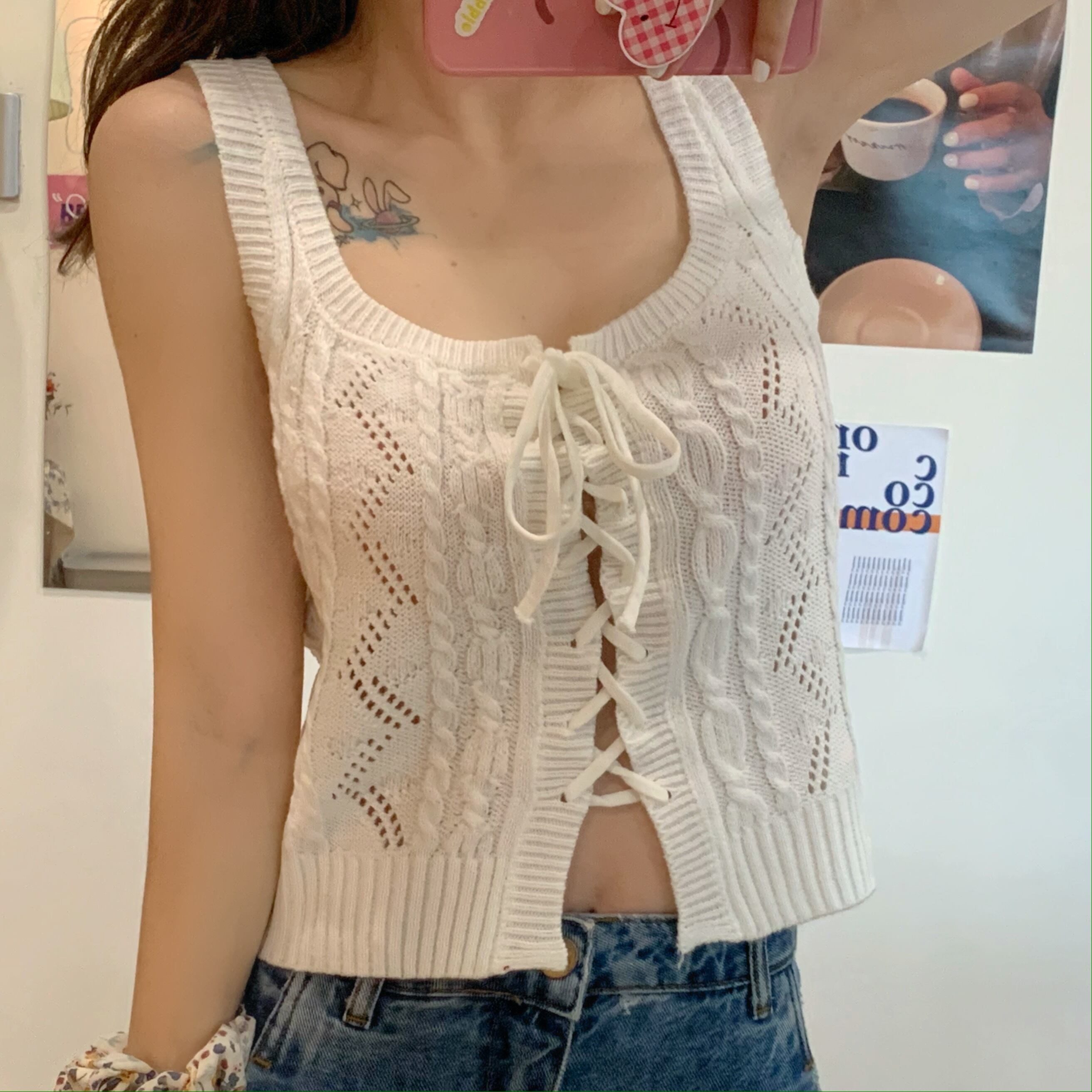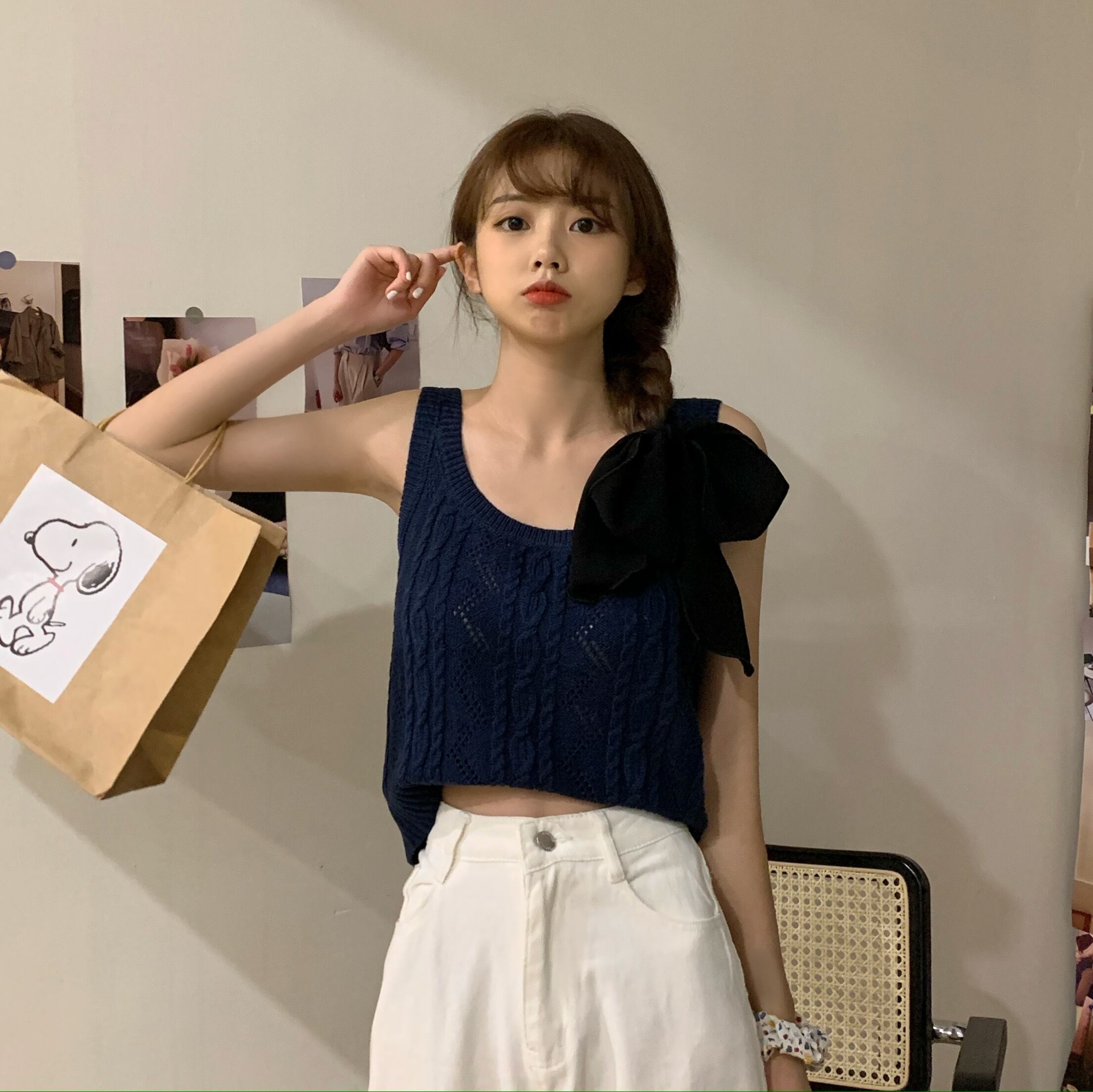 ニット夏服スタイルノースリーブトップス ショート 夏物 Marchs66164324986