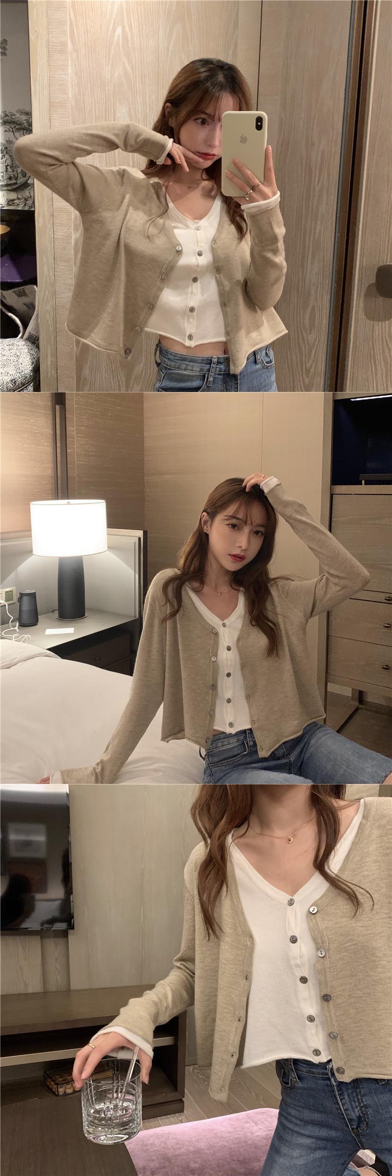 スプリングショートトップス レディースロングニットカーディガン薄手ジャケット 長袖 春物 Marchs53146240579