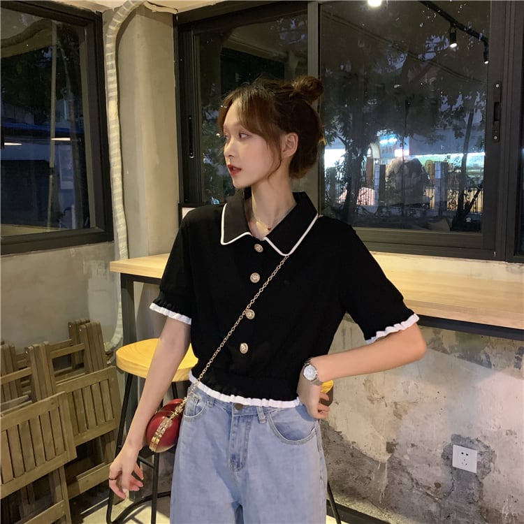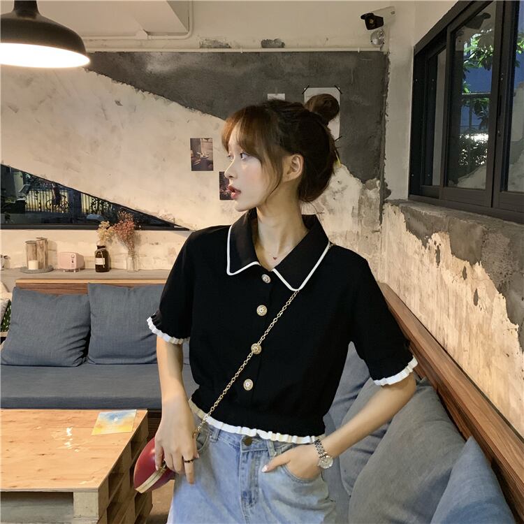 ブラックカラーショートTシャツレディース夏服ルーズトップス 夏物 Marchs13307048213