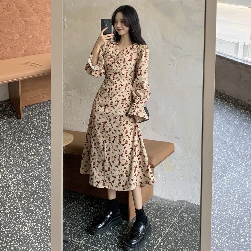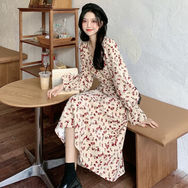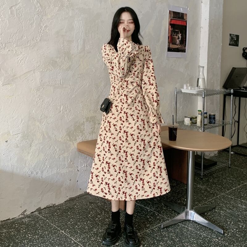 夏服レディーススタンダードスリーブフローラルワンピーススプリング秋物 レトロ 春物 夏物 オータム 花柄 Marchs65041142765