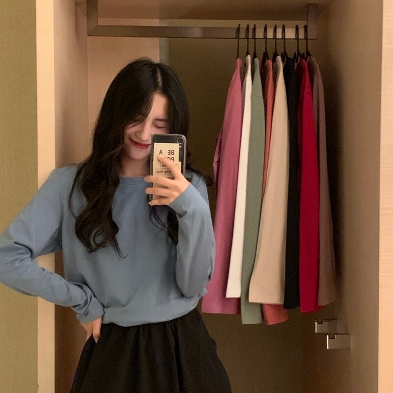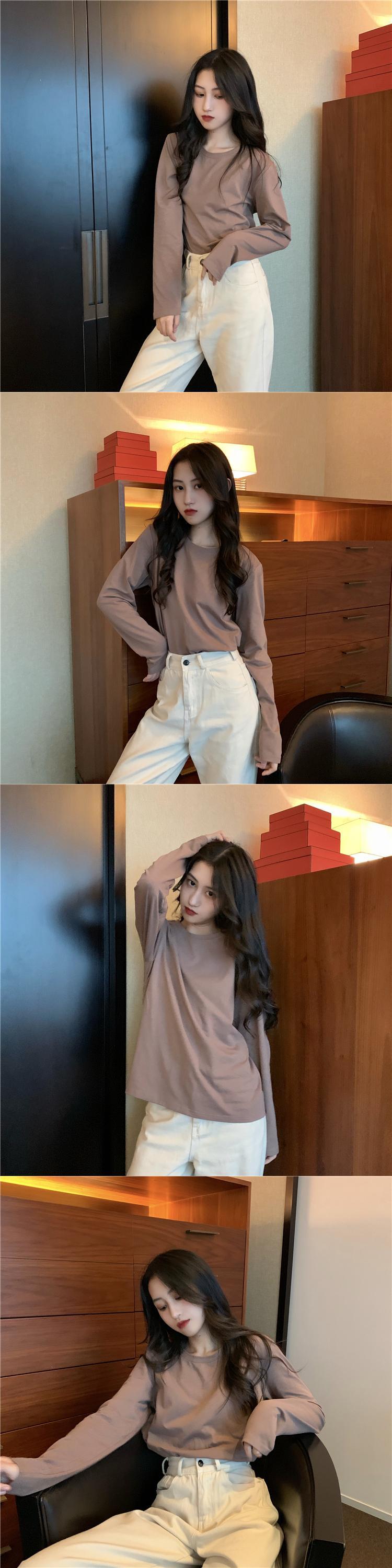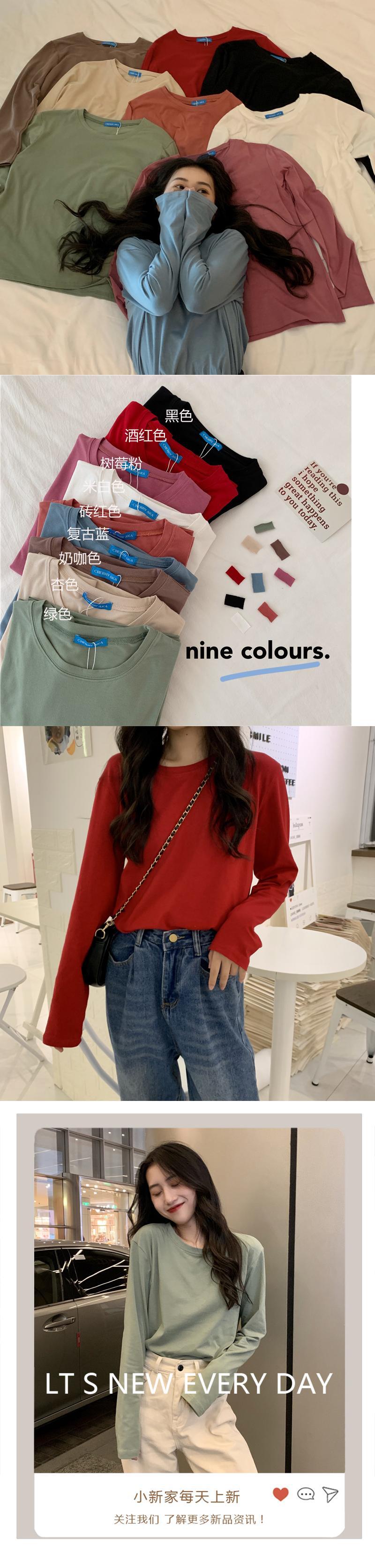 ソリッド カラーTシャツシャツ レディーススプリング秋物ルーズゆったりトップス ロング コットン 春物 オータム ソリッドカラー 長袖 Marchs89006405092