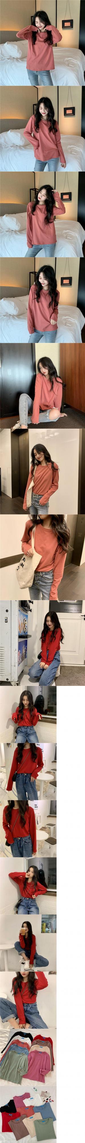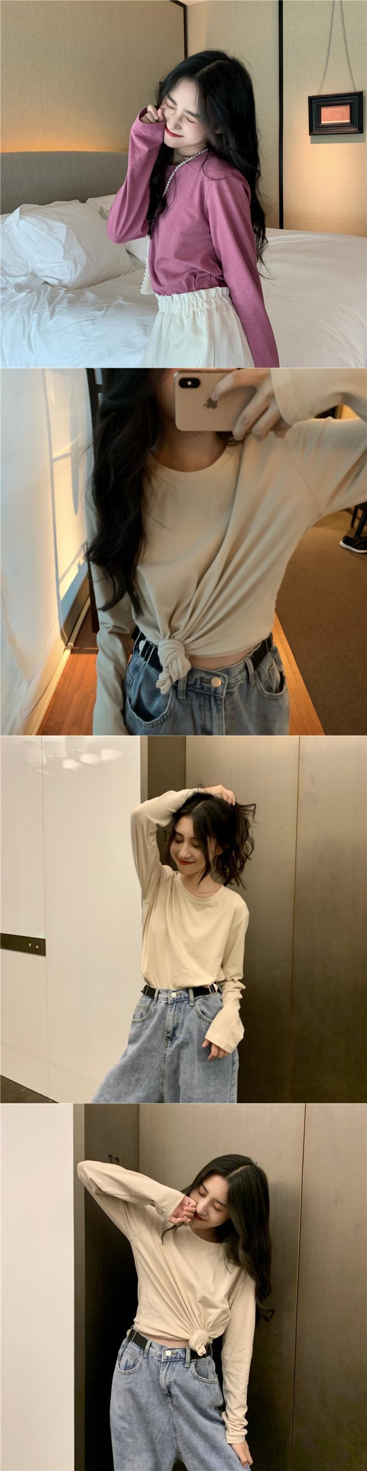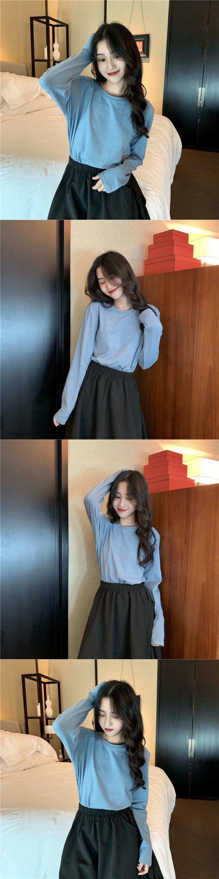 ソリッド カラーTシャツシャツ レディーススプリング秋物ルーズゆったりトップス ロング コットン 春物 オータム ソリッドカラー 長袖 Marchs89006405092
