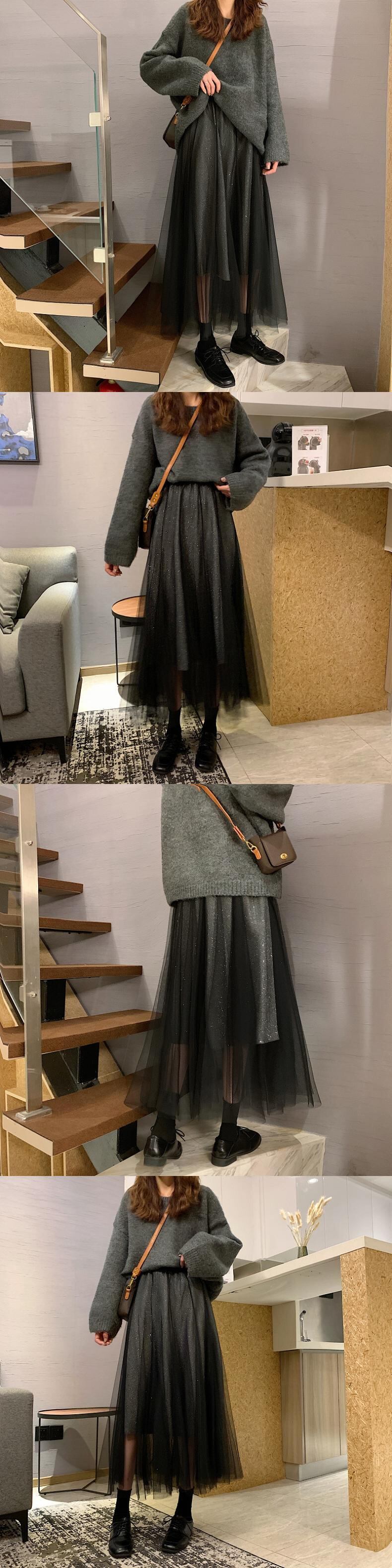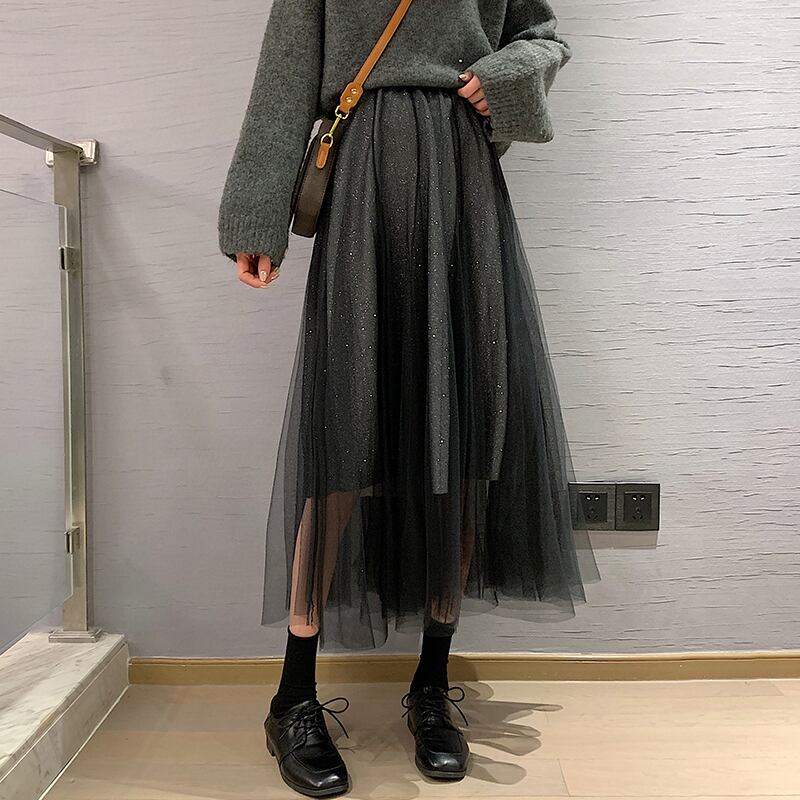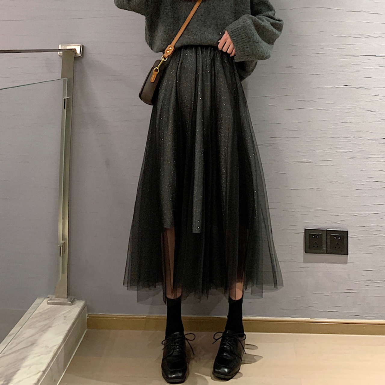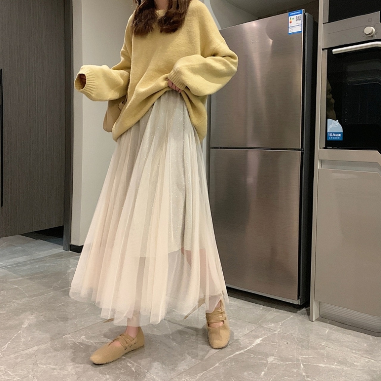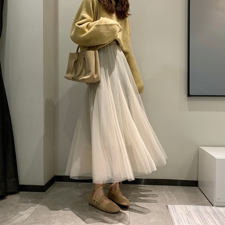 メッシュスカート レディースハイウェストAライン薄手ロングスプリング 春物 パニエ ペチコート ウエスト ミドル丈 Marchs16184940266