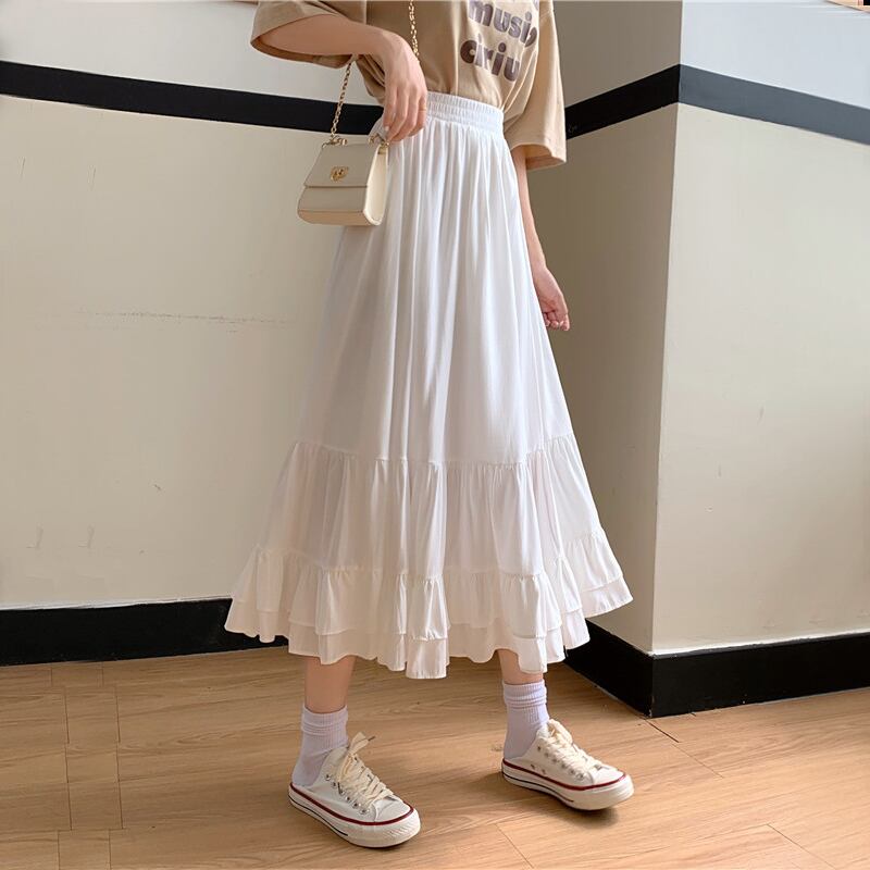 ホワイトスカート レディースハイウェストAラインスプリング 春物 ウエスト ミドル丈 Marchs53737814854