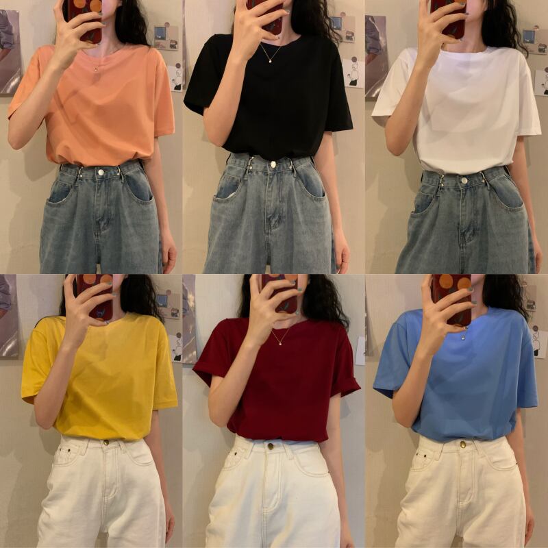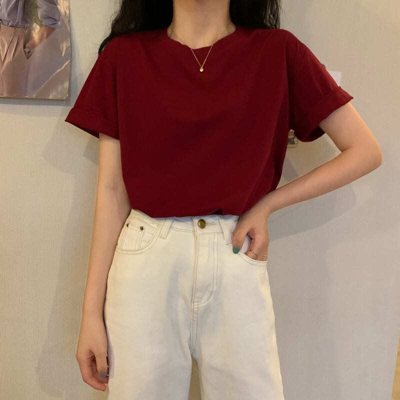 夏服レッドホワイトブラックトップス Tシャツレディースルーズ韓国ファッショントレンド コットン 夏物 ピュア スタイル Marchs11024404284