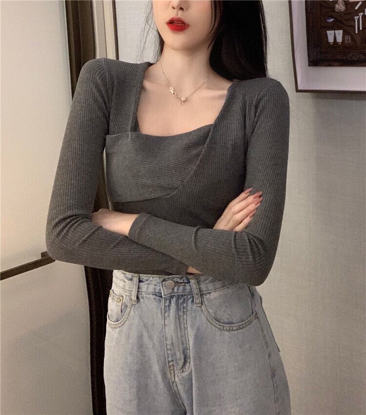トップス Tシャツシャツ スプリング秋物スタイルスリムスタンダードカラーゆったり ロング レトロ 春物 オータム スクウェア 長袖 Marchs35567812275