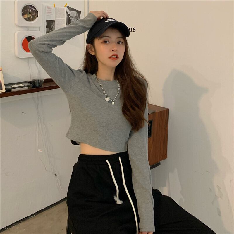 韓国ファッションスタイルTシャツシャツ グレーゆったりレディーススプリング秋物スリムフィットショートトップス ハイウェストウェストパンツ ロング 春物 オータム 長袖 ウエスト Marchs54801340735