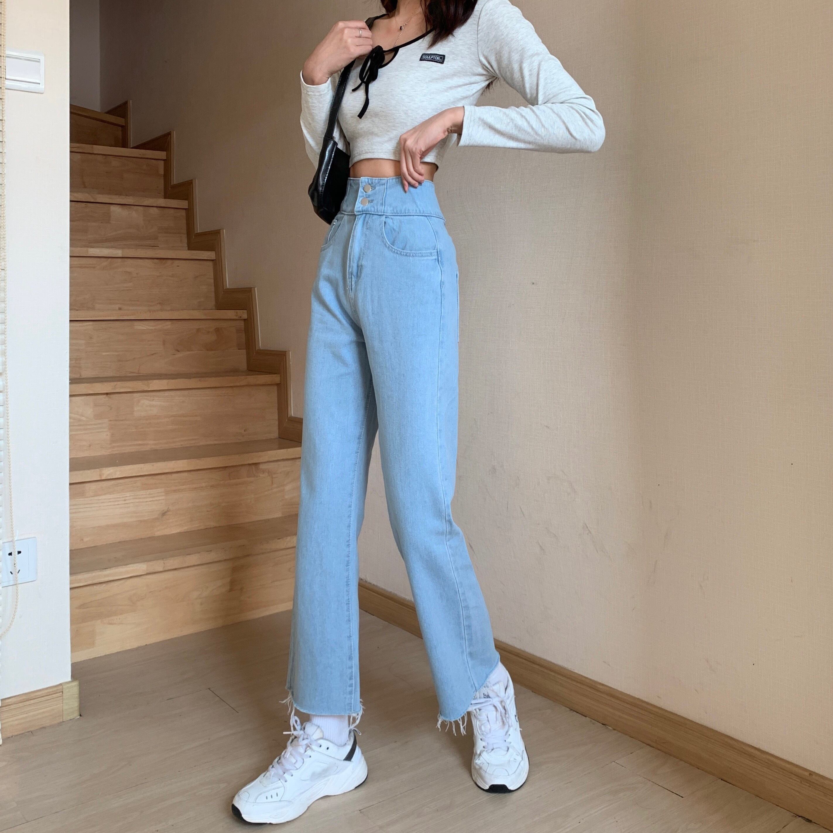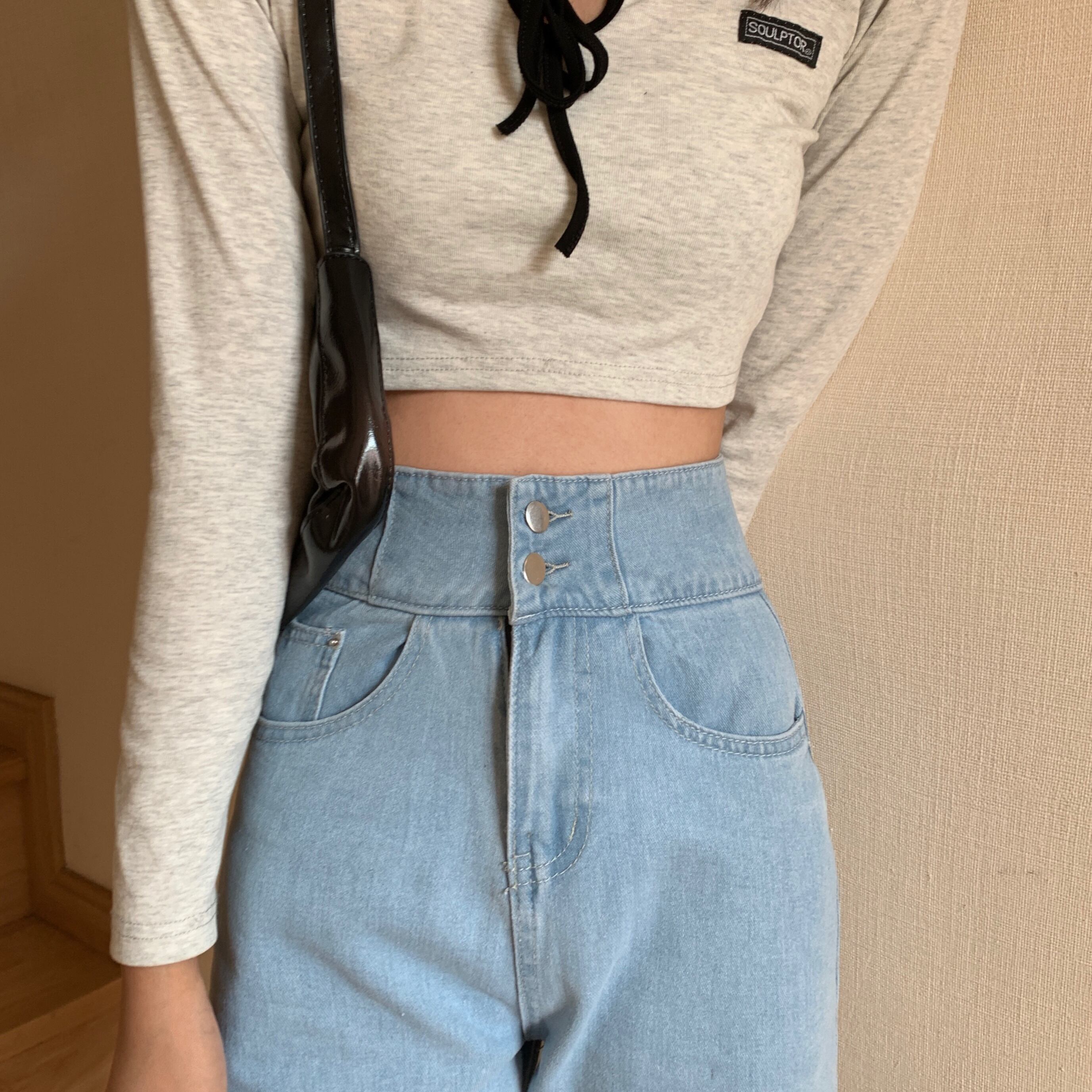 スタンダードジーンズ スプリング夏服薄手ルーズハイウェストパンツ レッド レトロ 春物 夏物 ウエスト Marchs89249175157