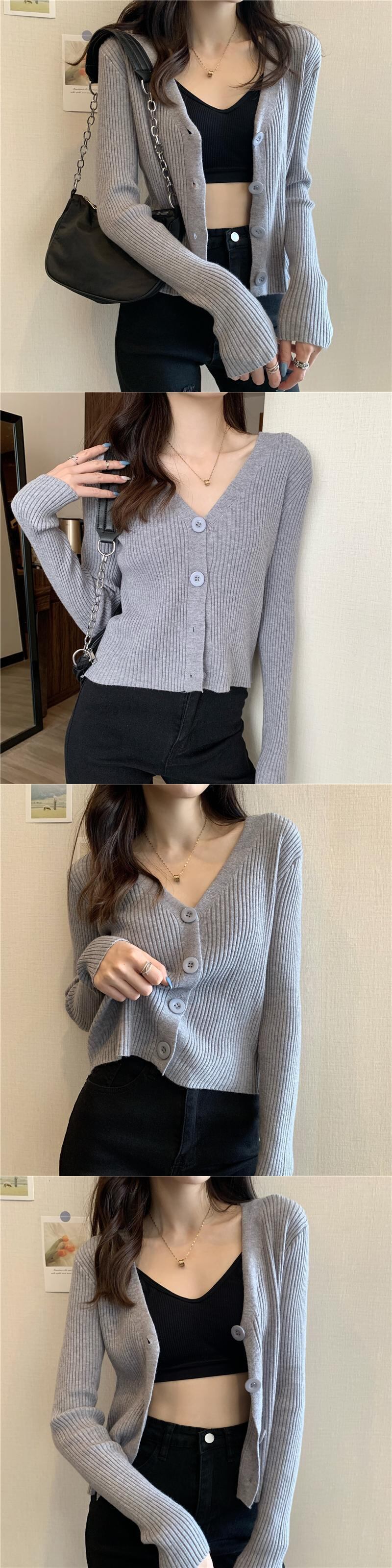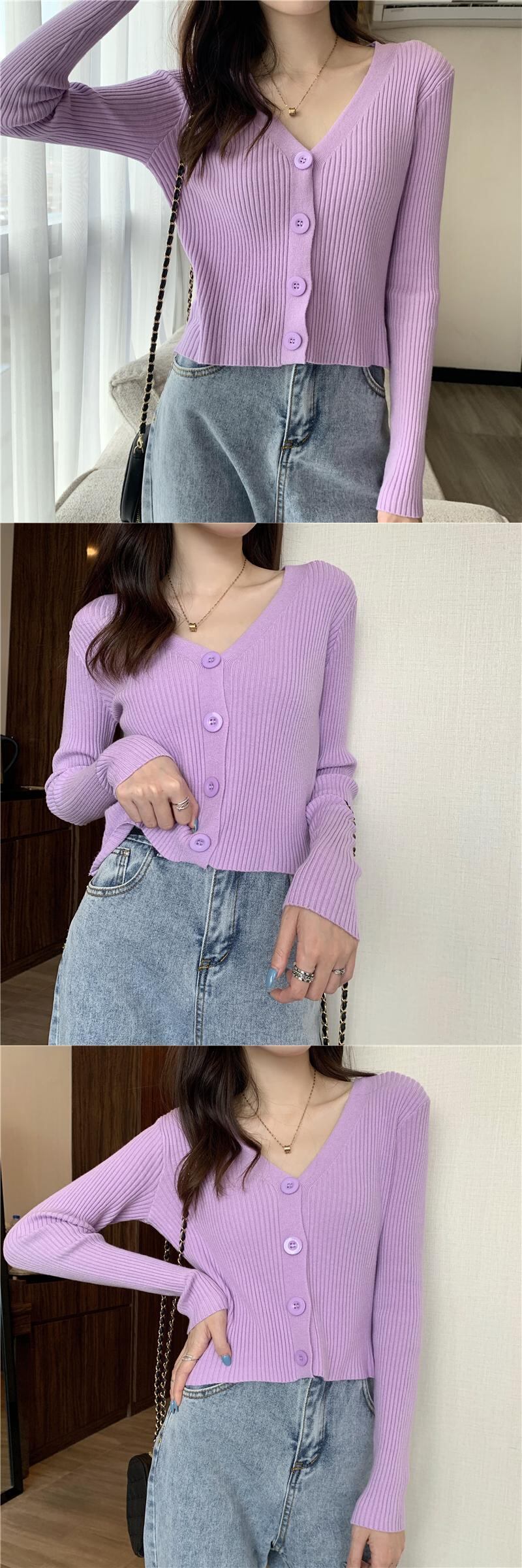 スプリングソリッド カラー薄手ニットカーディガンジャケット レディーストレンドショートトップス ロング 春物 ソリッドカラー 長袖 Marchs35259517049