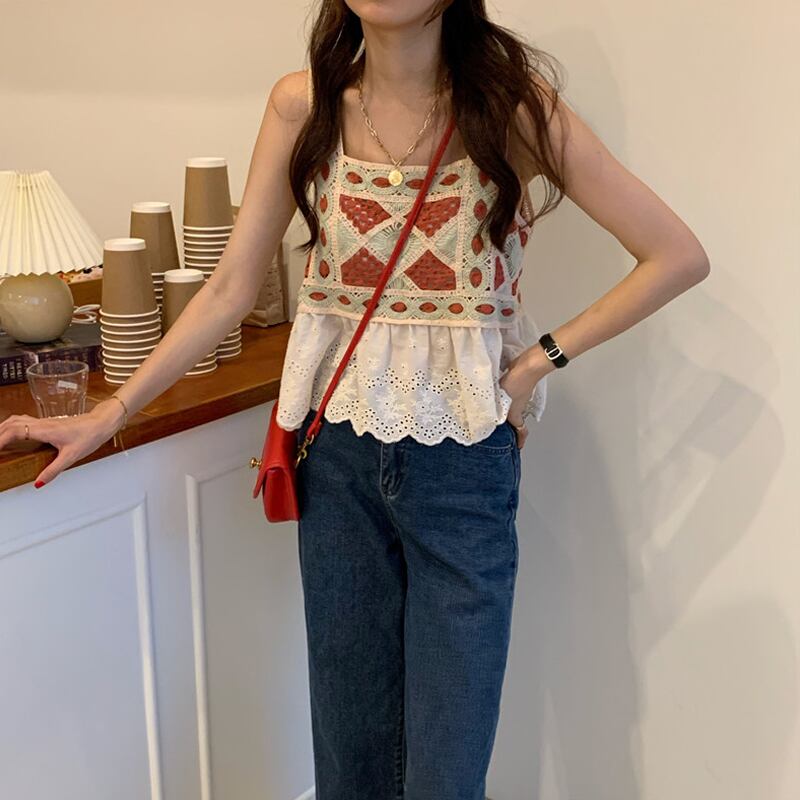 スタンダードスタイルルーズ薄手ノースリーブトップス レトロ Marchs49552847072