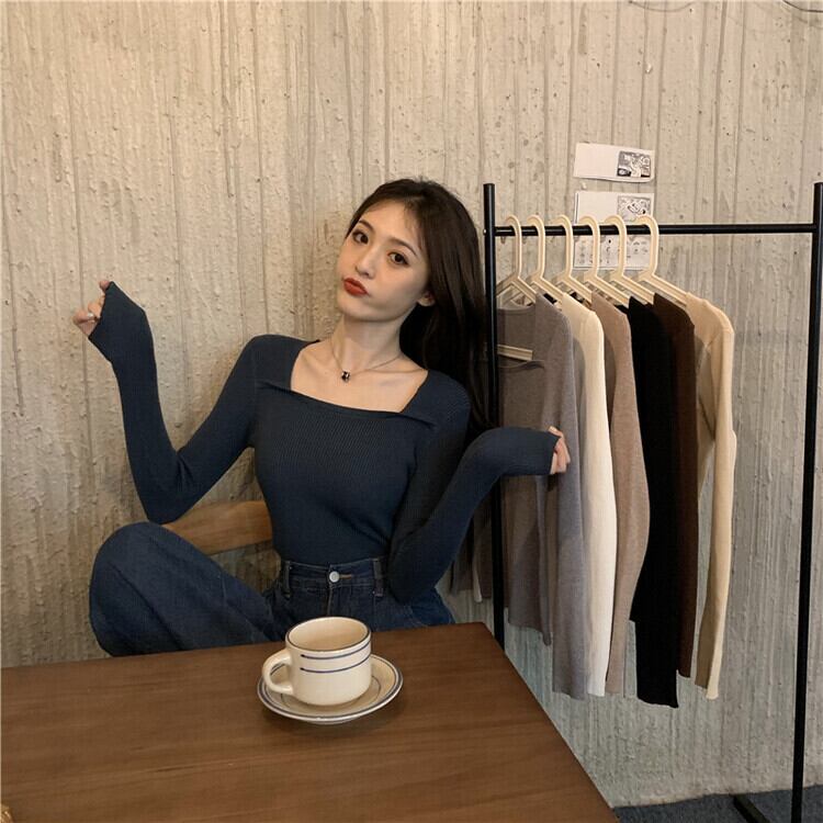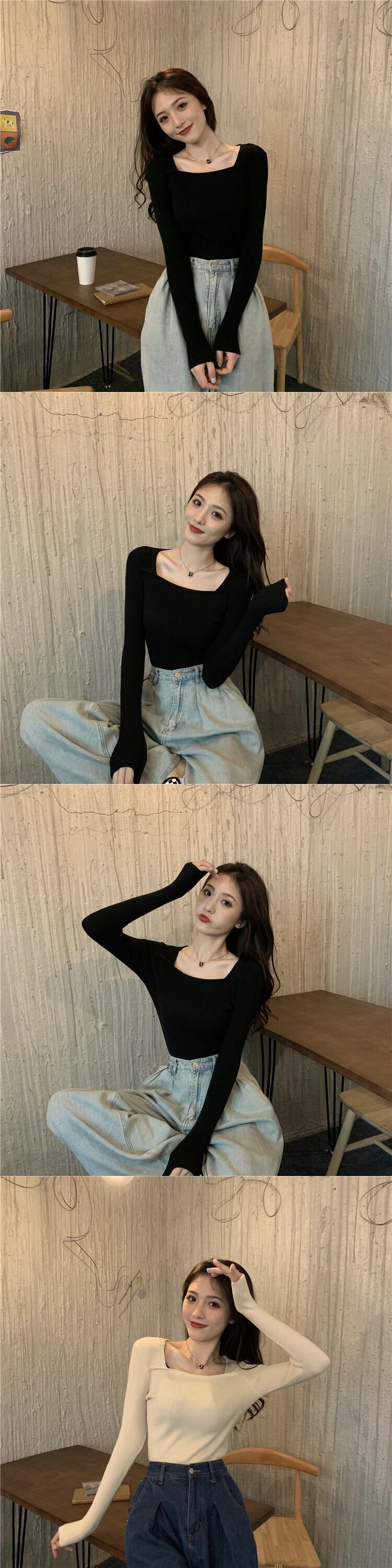 スプリング秋物Tシャツシャツ レディーストレンドゆったりスリムトップス ロング 春物 オータム スクウェア 長袖 Marchs55770664930