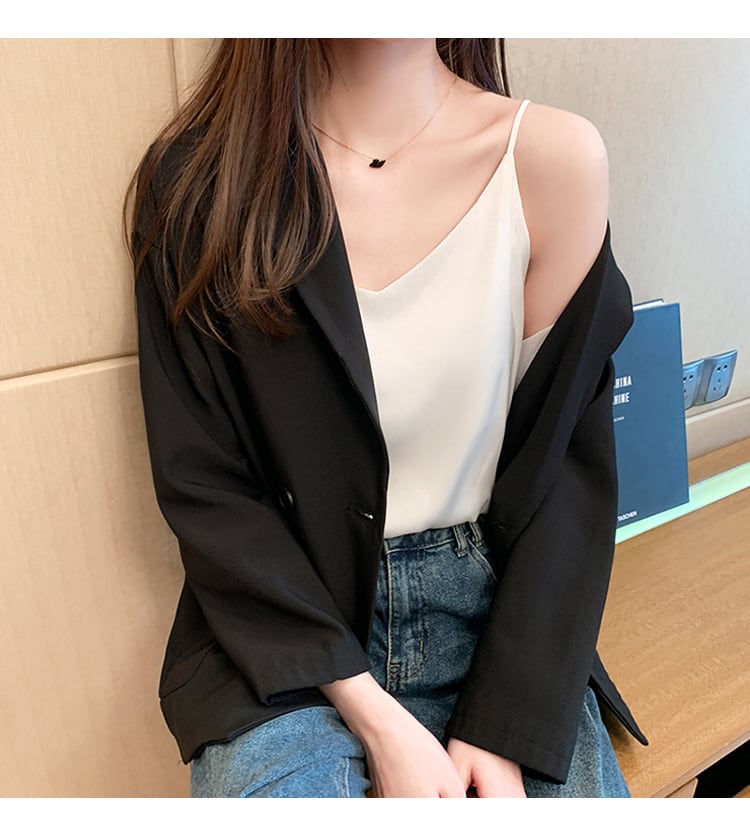 夏服ノースリーブブラックルーズトップス 夏物 シルク Marchs69269473530