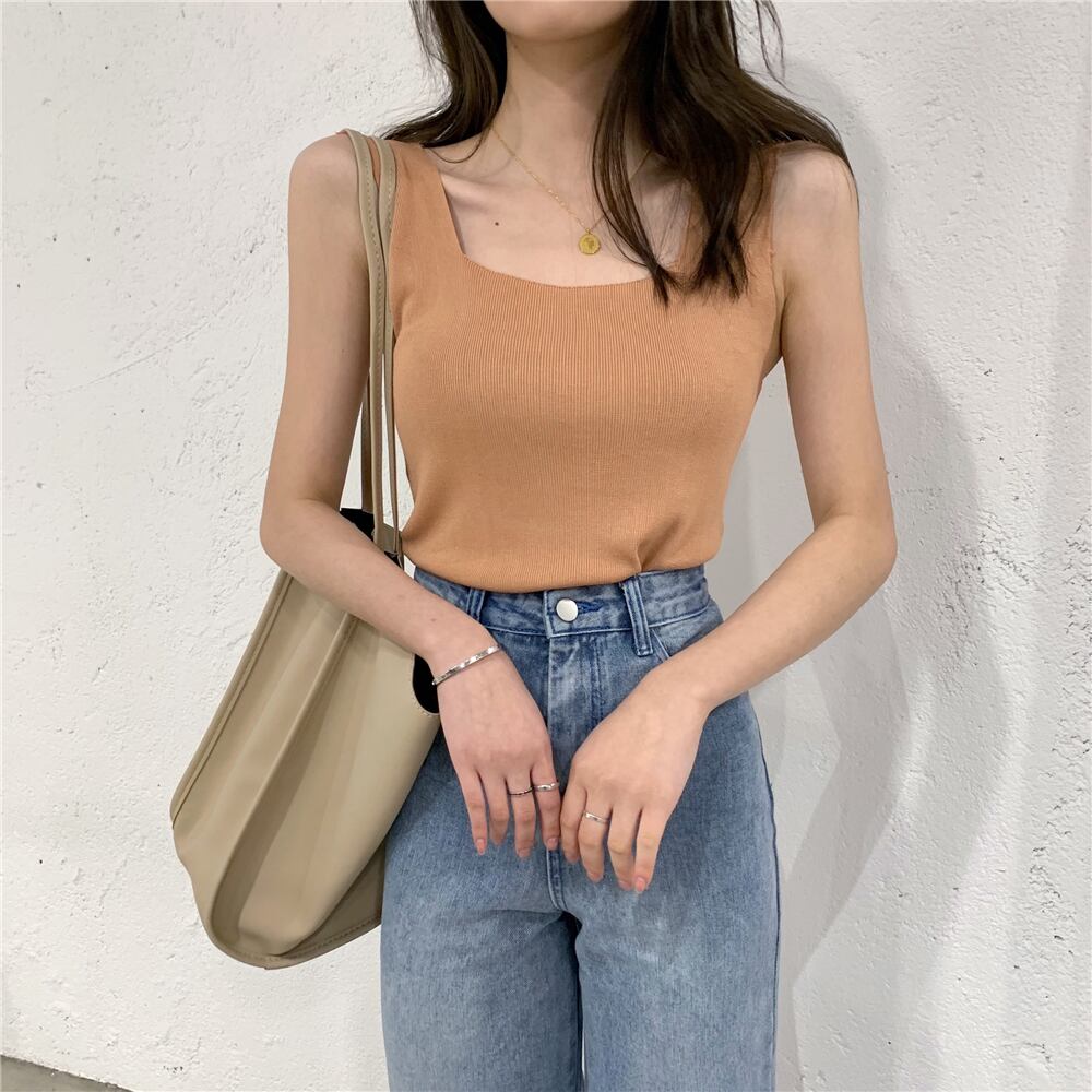 夏服スリムノースリーブニット 夏物 オフショルダー シルク Marchs99219975046