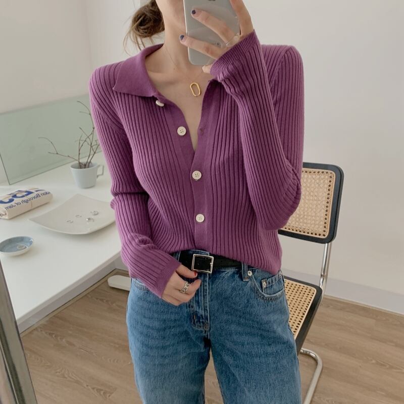 スプリングニットトップス カラーカジュアルカーディガン ロング 春物 長袖 Marchs9334408484