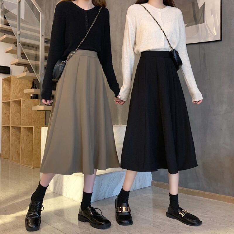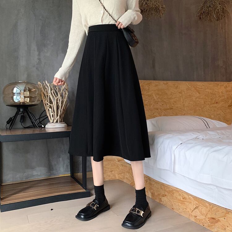 スプリングスタンダードハイウェストウェストスカート 韓国ファッション薄手Aライントレンド レトロ 春物 スタイル ウエスト ミドル丈 Marchs83408230760