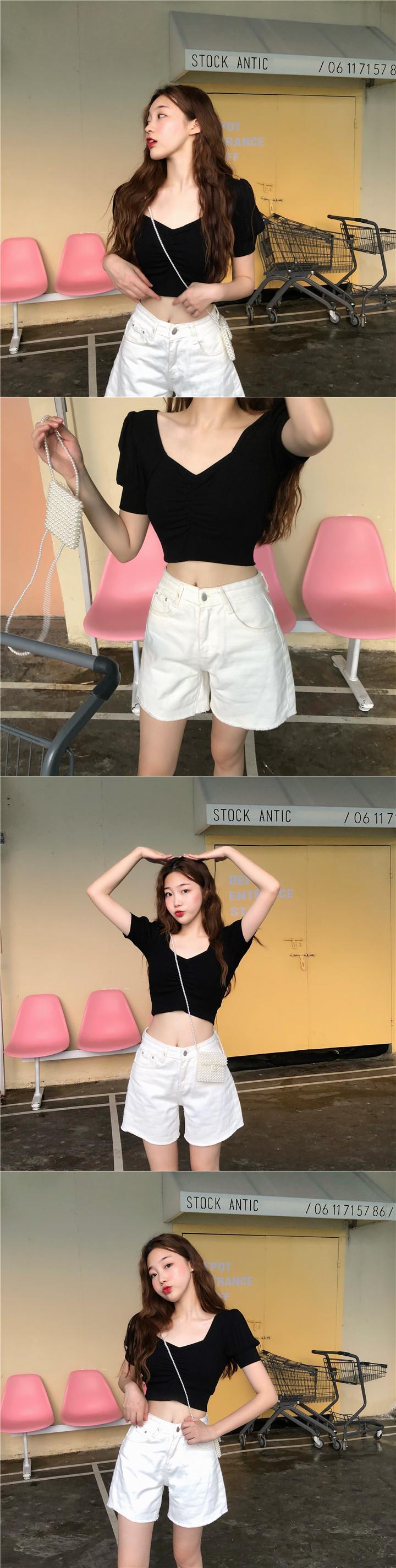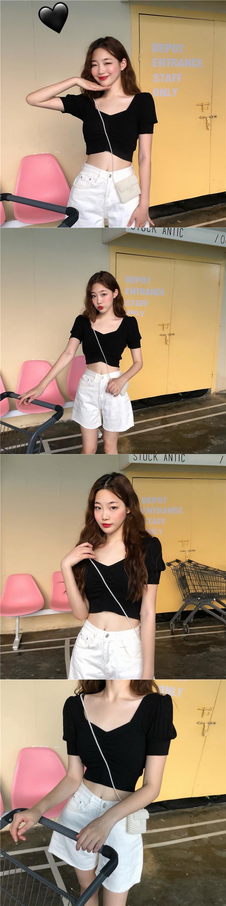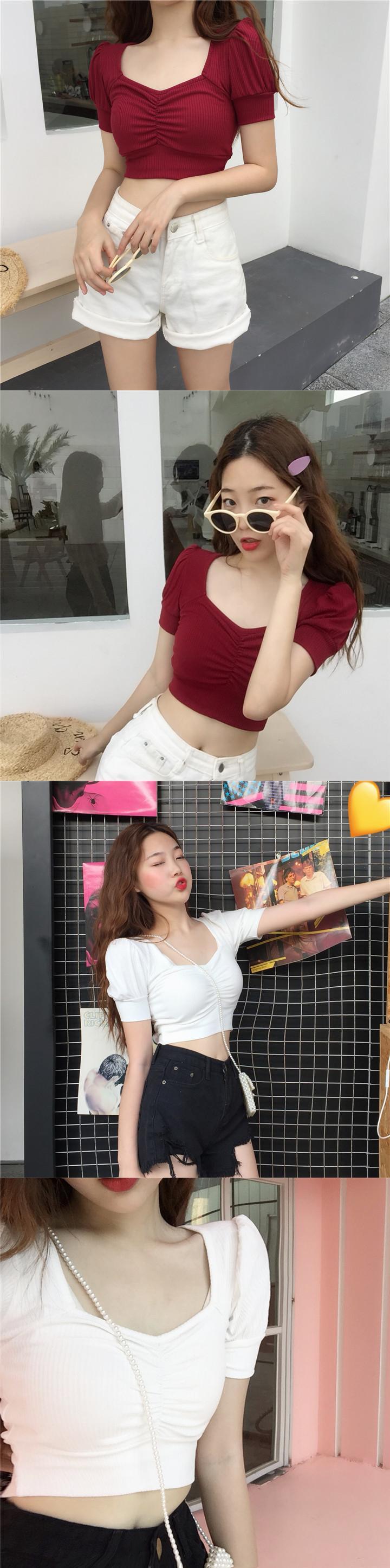 夏服スタンダードTシャツスリーブストレッチショートトップス レトロ エラスティック 伸縮 夏物 スクウェア Marchs39813138770
