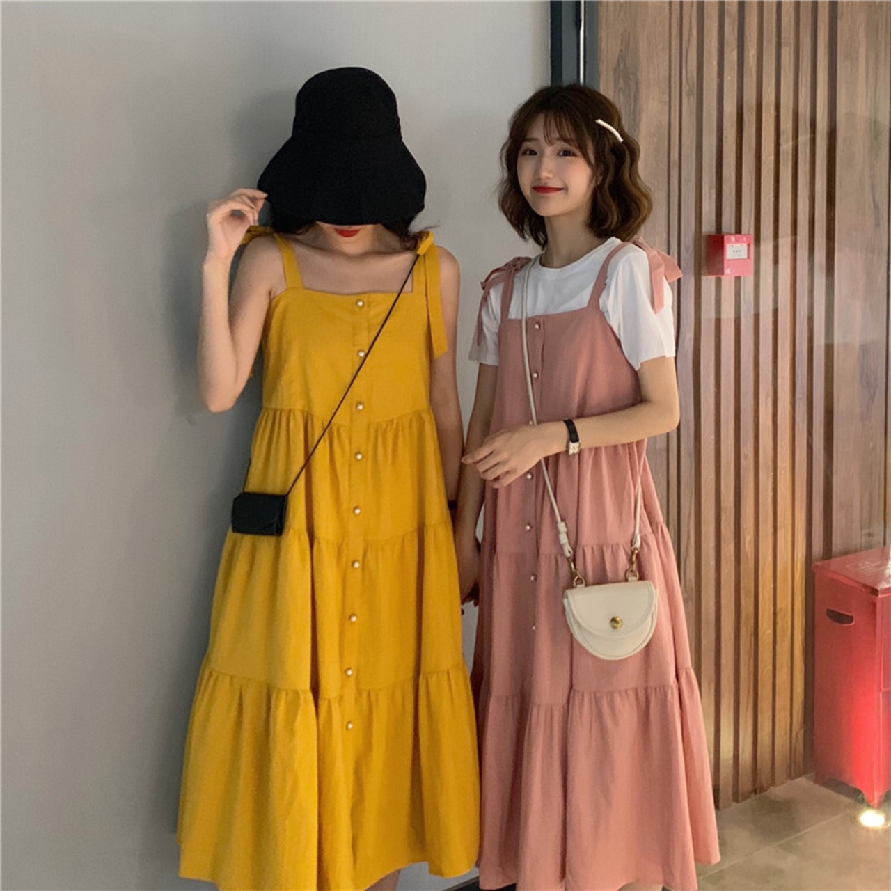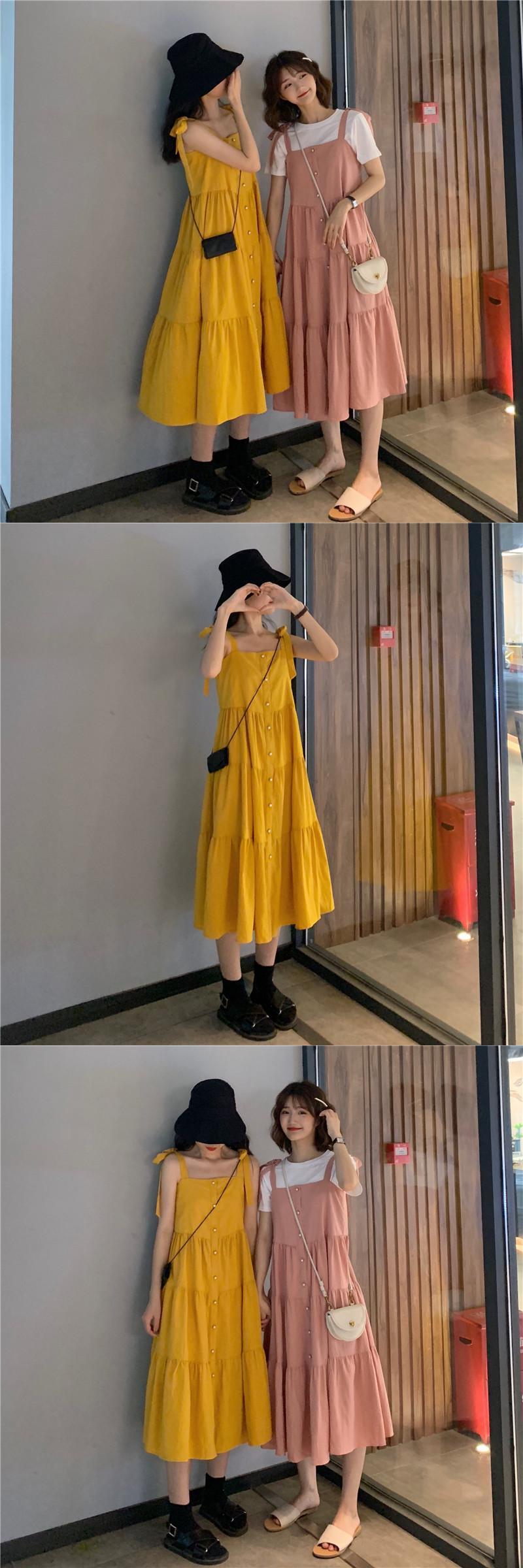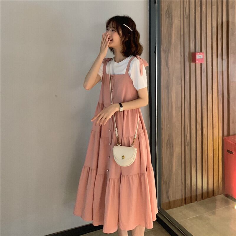 ワンピースレディース夏服ルーズロングスカート レッド 夏物 Marchs26038405091