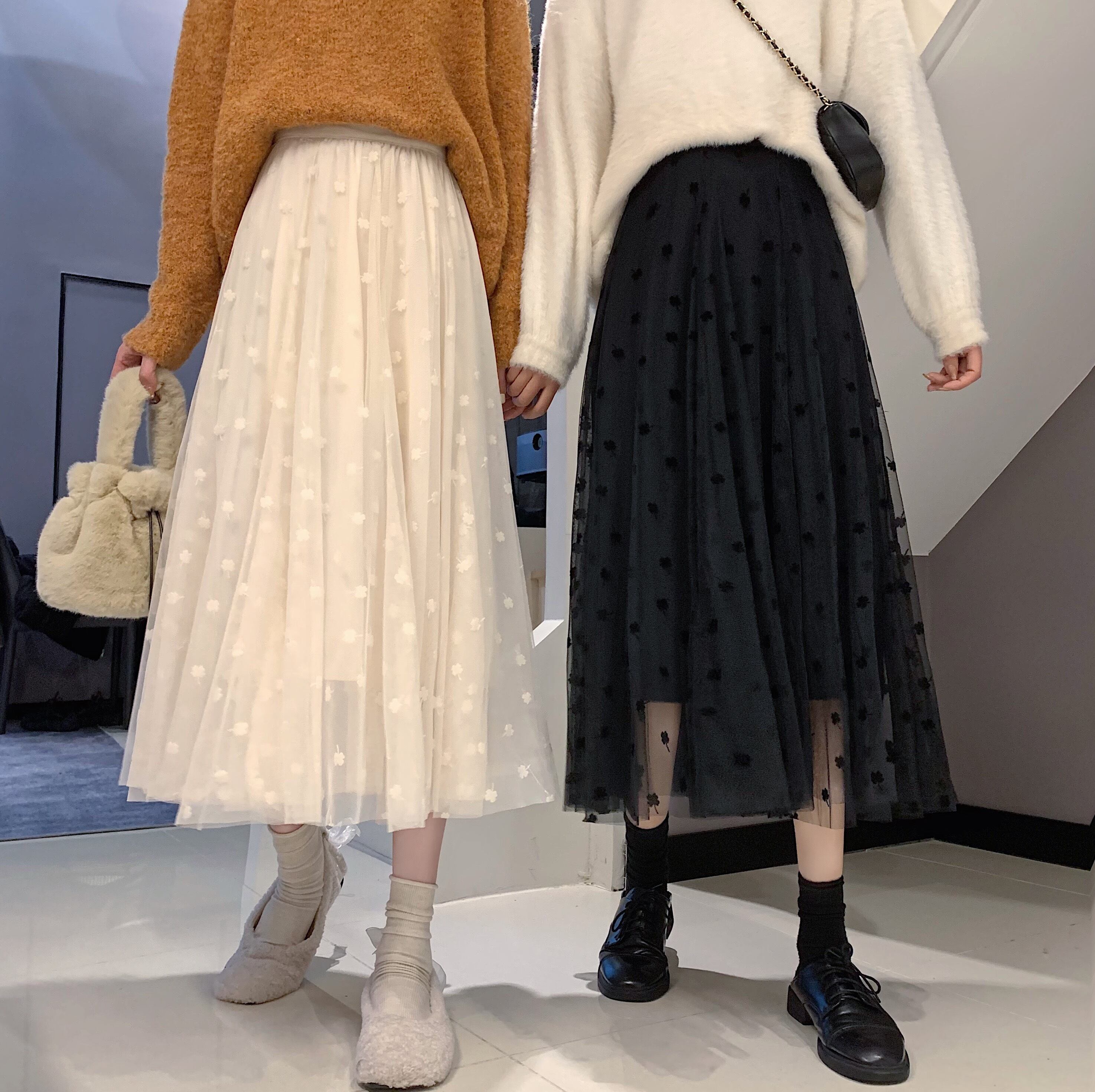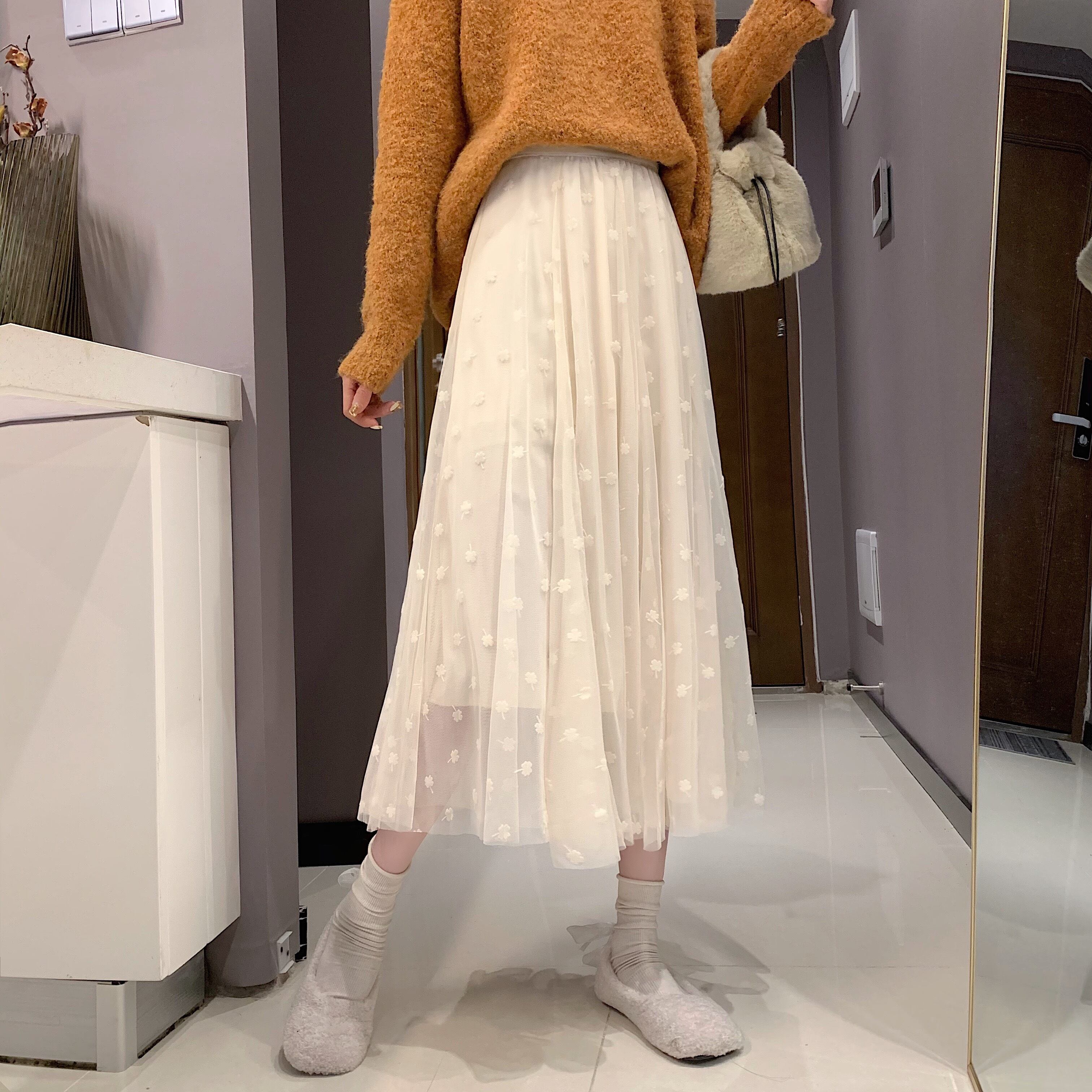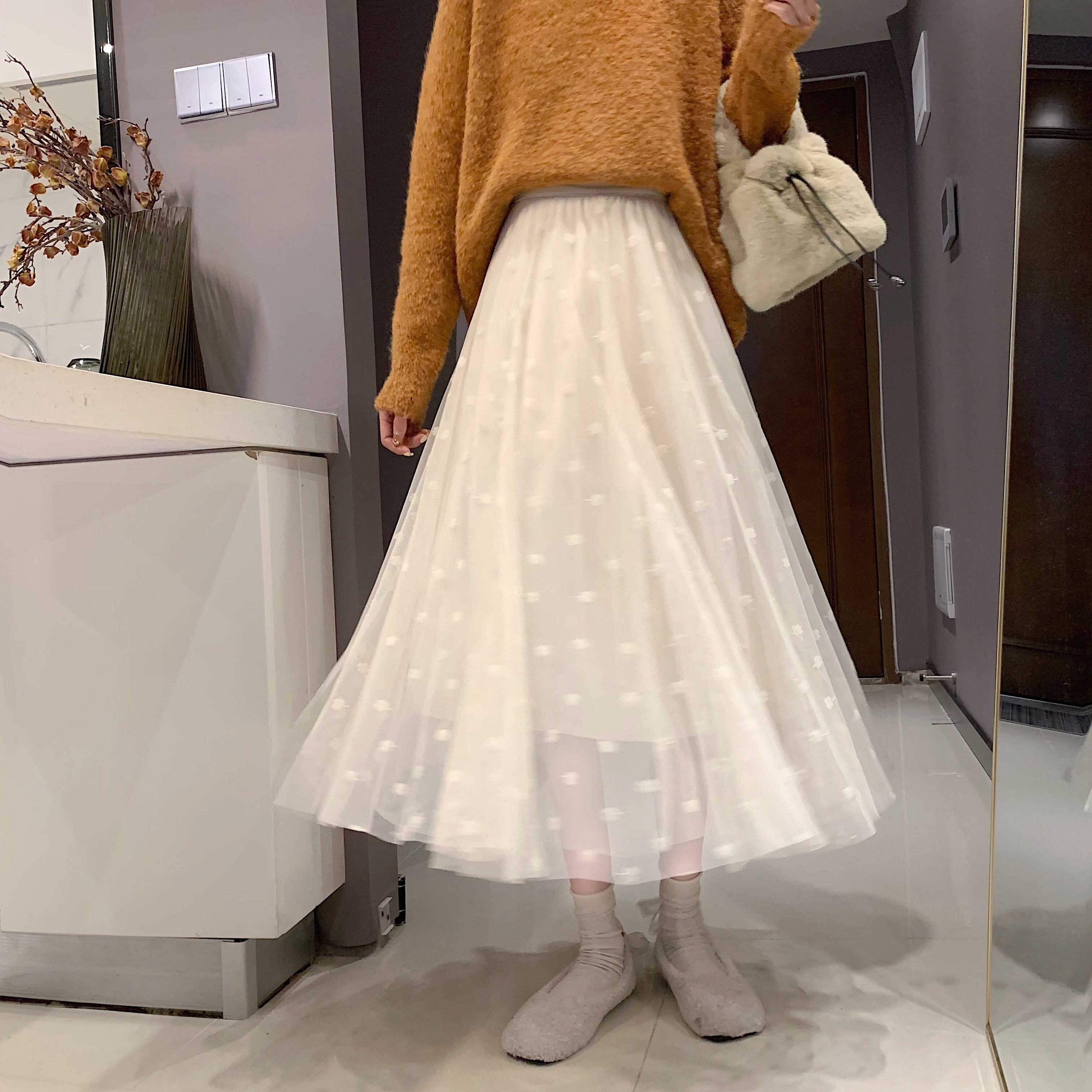 メッシュAラインスカート スプリング夏服セーター レディースハイウェストプリーツ 春物 夏物 ウエスト ミドル丈 Marchs58871822264