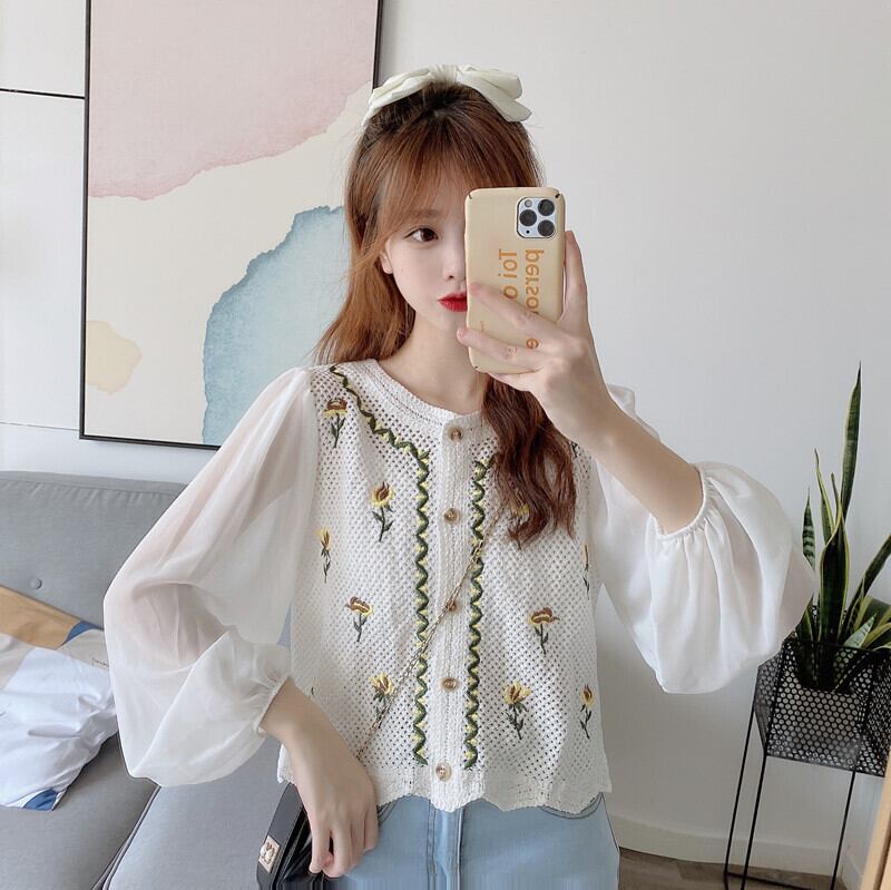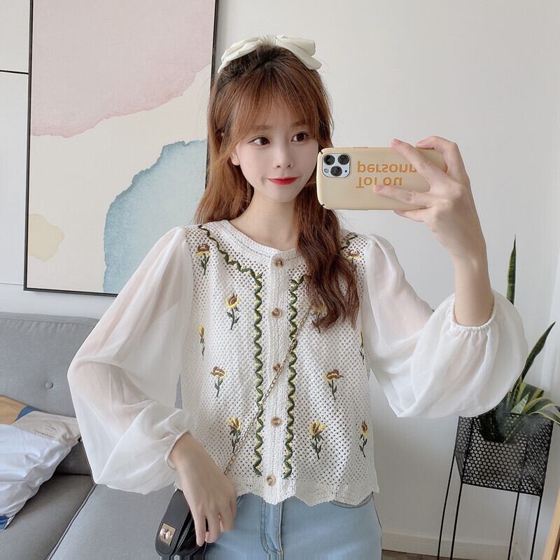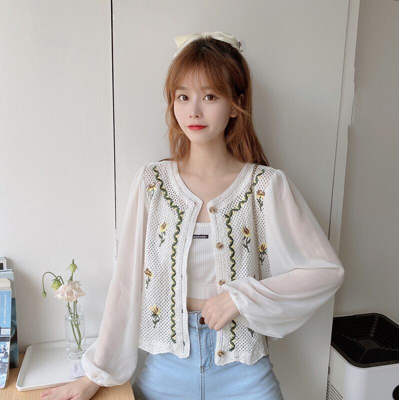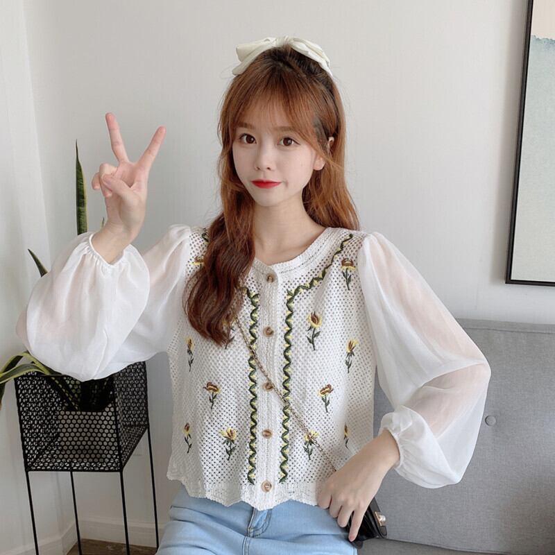 スリーブトップス ショートスタンダード刺繍ホワイトシャツ レディース レトロ 大人ガーリー スウィート キュート カジュアル Marchs27168080420