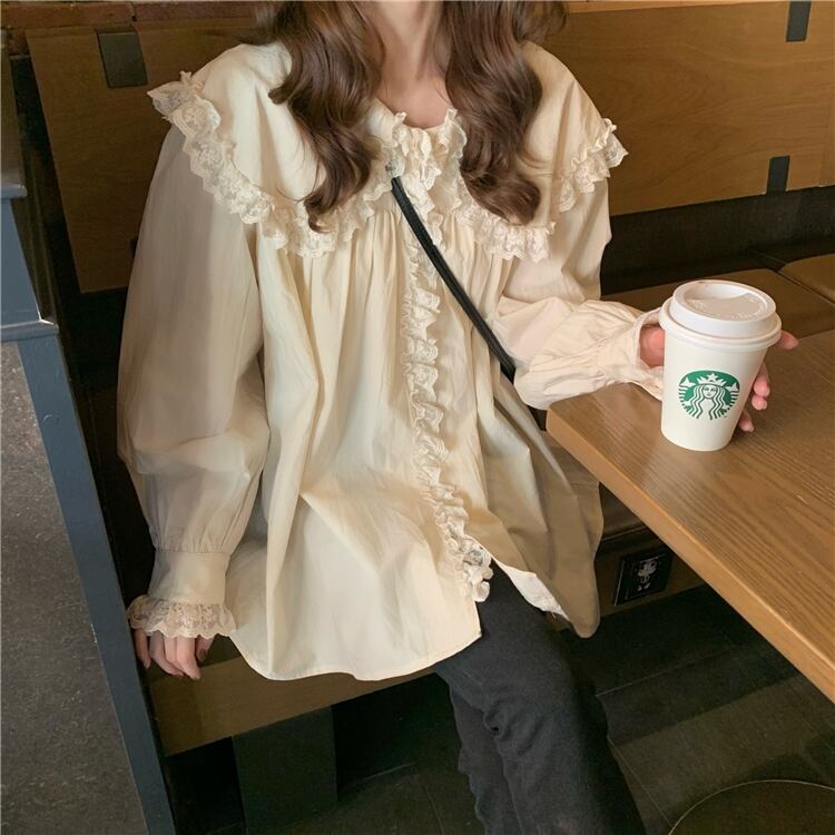 カラーブラウス レディーススリーブ韓国ファッションルーズシャツ 大人ガーリー スウィート キュート カジュアル Marchs61981699237