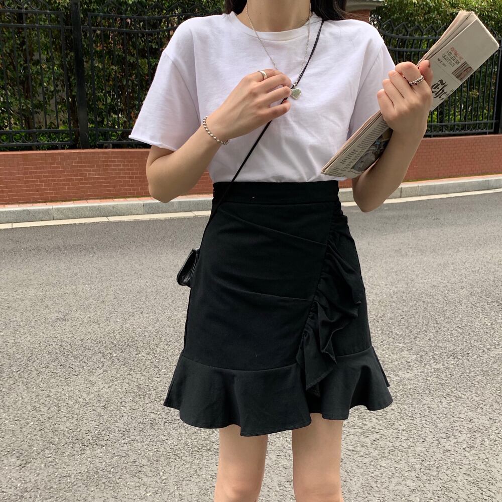 スカート ハイウェストウェストブラックAラインレディース夏服薄手 ふわふわ 夏物 ウエスト Marchs24864707171