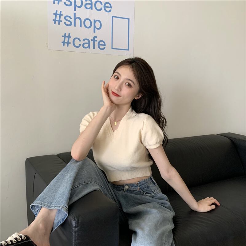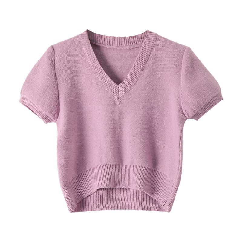 薄手Vネックニット夏服クロップトップ トップス 夏物 Marchs88977285625