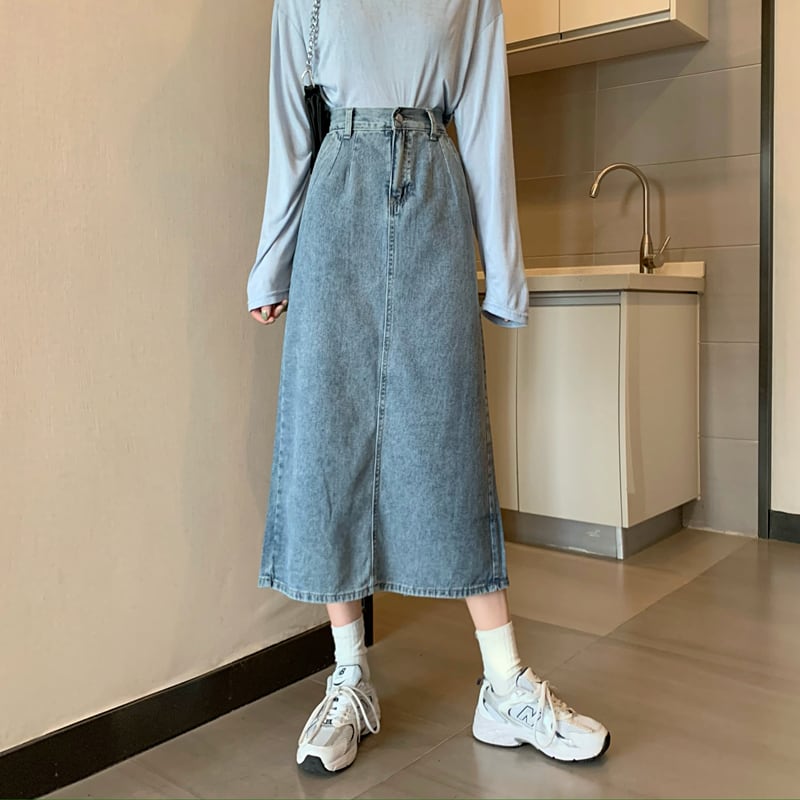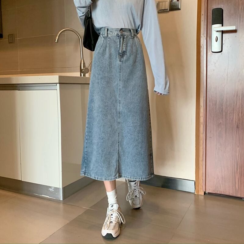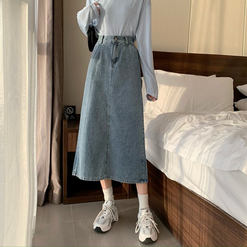 スカート レディーススプリングハイウェスト薄手Aライン レッド 春物 ウエスト ミドル丈 Marchs39335266146