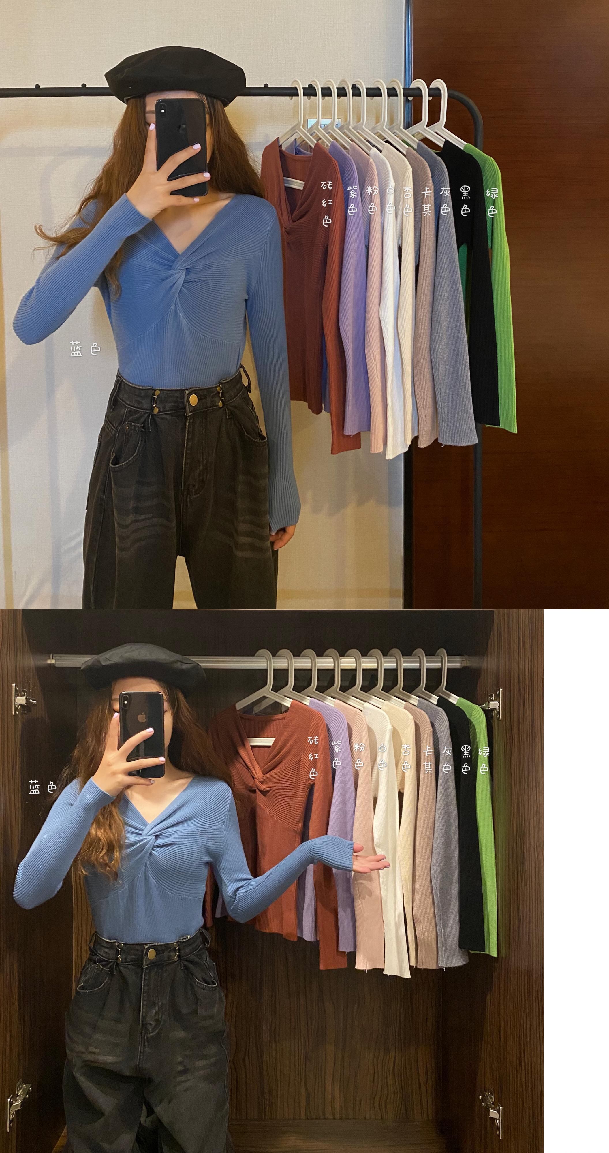 韓国ファッションスタイルクロスVネックセーター コート ニットゆったりシャツ レディーススプリング 春物 Marchs35492739499