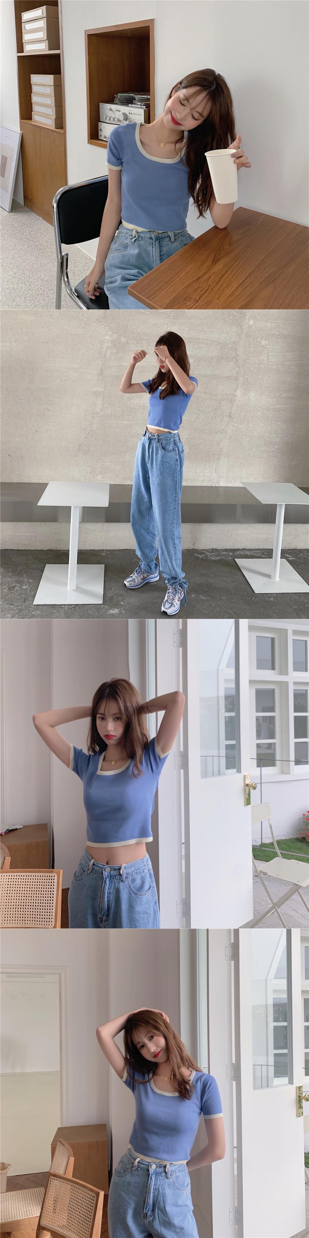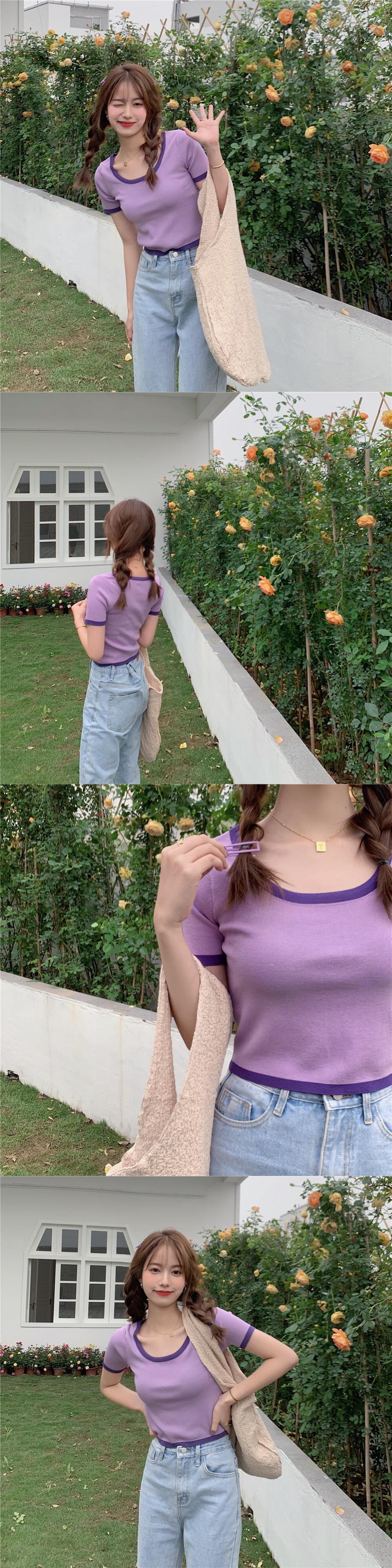 ショートTシャツトレンドニットトップス パープル Marchs67969412646