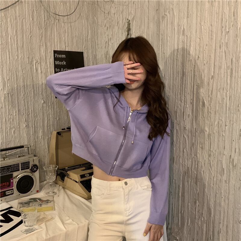 フードセーター レディーススプリング秋物薄手スタイルルーズショートカーディガンジャケット ストリート 春物 オータム Marchs97418279500