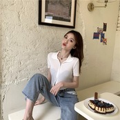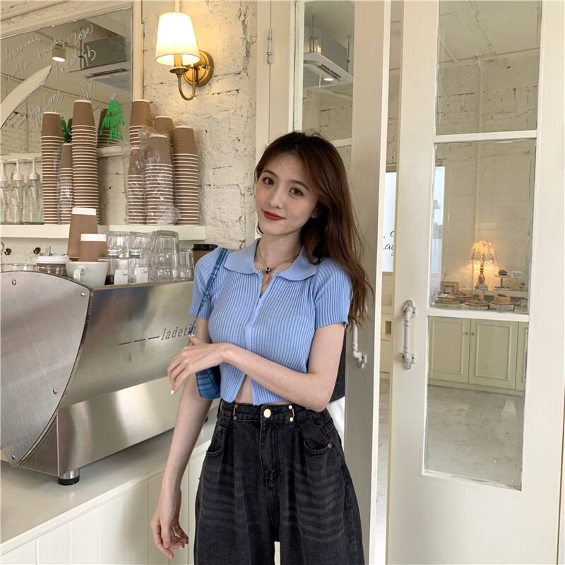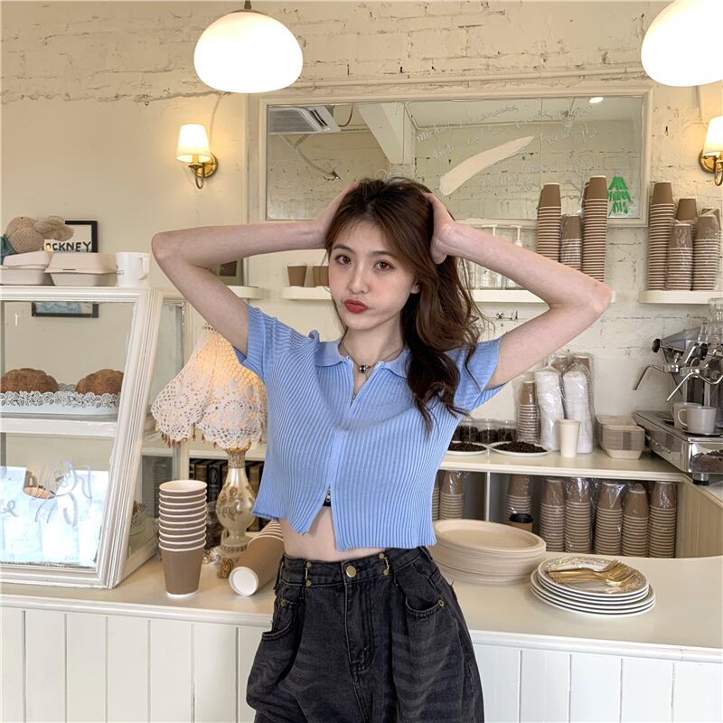 ニットシャツ ショートTシャツ夏服トレンドジッパーカーディガントップス 夏物 Marchs33504574753