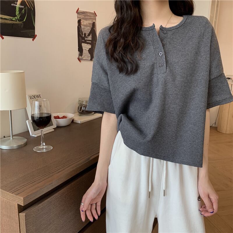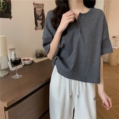 韓国ファッショントップス ルーズラウンドネック薄手ニットTシャツレディース夏服 夏物 Oネック シルク スタイル Marchs82727812765