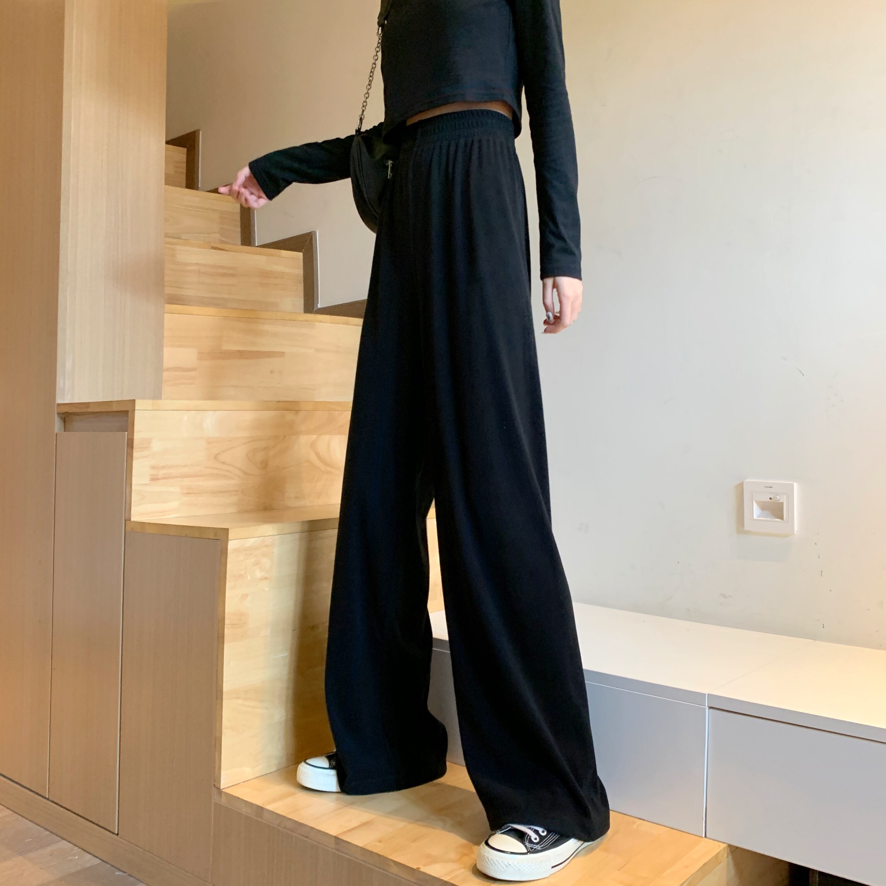 ニットワイドレッグパンツ レディーススプリングハイウェストウェストルーズスリムカジュアル 春物 ワイドパンツ ウエスト Marchs12418247807