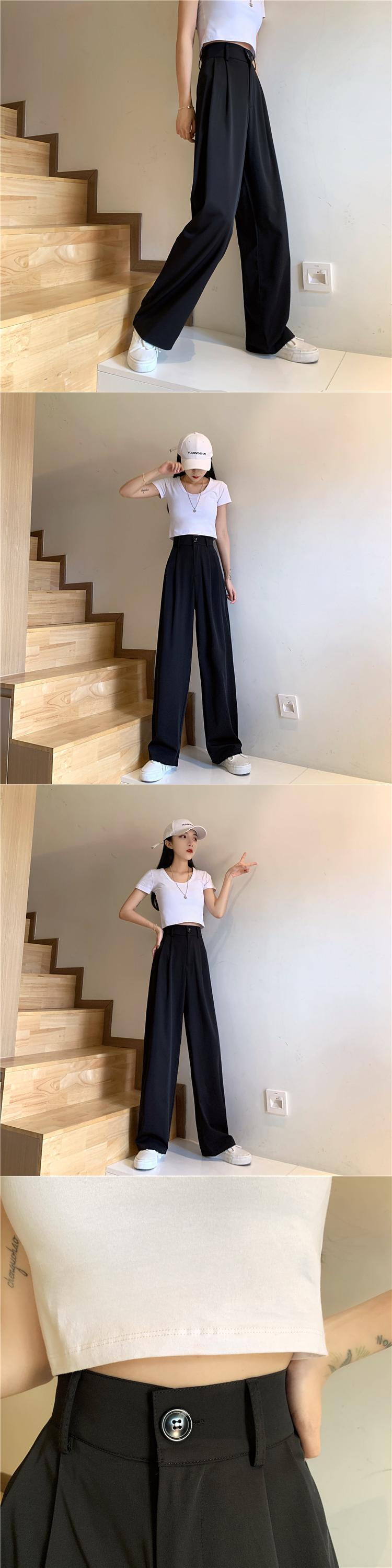 パンツ スプリング夏服ルーズハイウェストウェストワイドレッグロングレディーストレンド薄手 春物 夏物 ワイドパンツ ウエスト Marchs31573500730