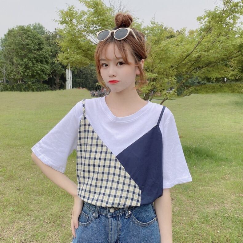 格子柄Tシャツレディーストレンドトップス 夏服ワンピースルーズ韓国ファッション 夏物 スタイル Marchs20523895907