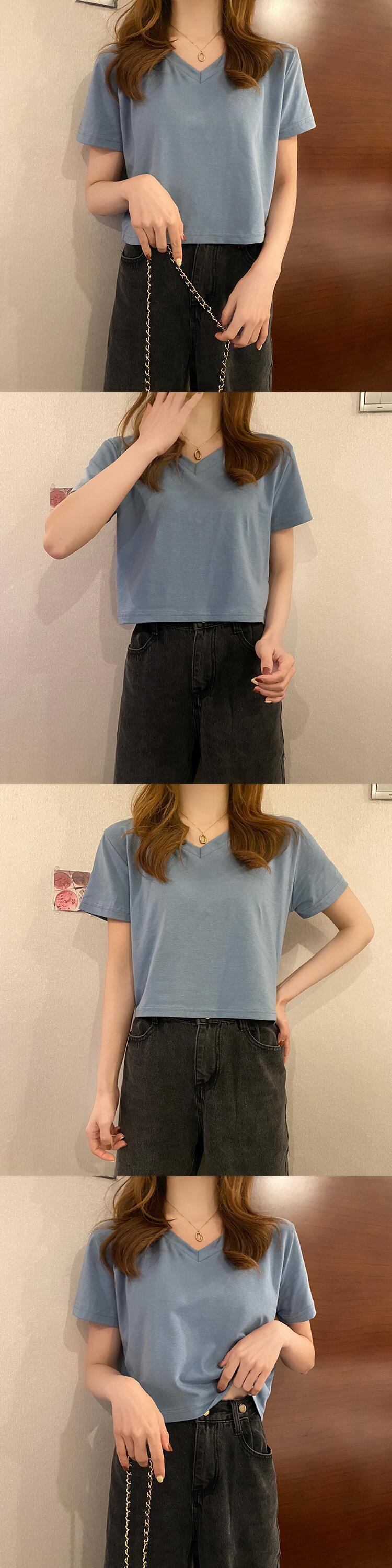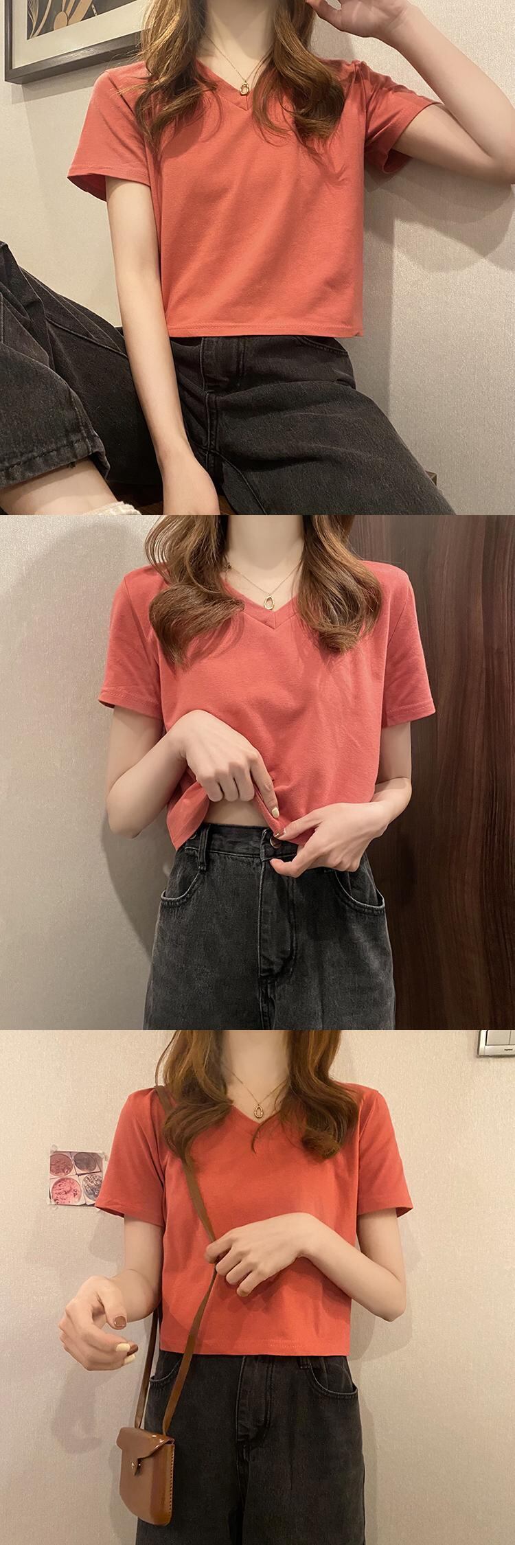 夏服ルーズショートスタイル薄手Vネックトップス レディースホワイトTシャツ 夏物 Marchs82539148406