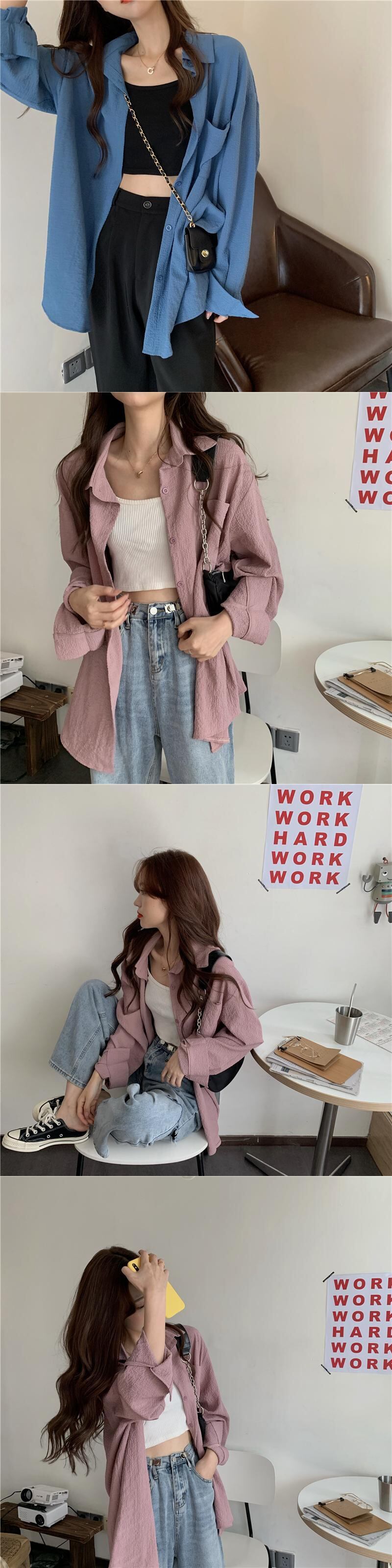 シャツ 薄手夏服ルーズスタンダードソリッド カラートップス ロング レトロ 夏物 ソリッドカラー スタイル 長袖 Marchs54072994705