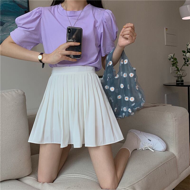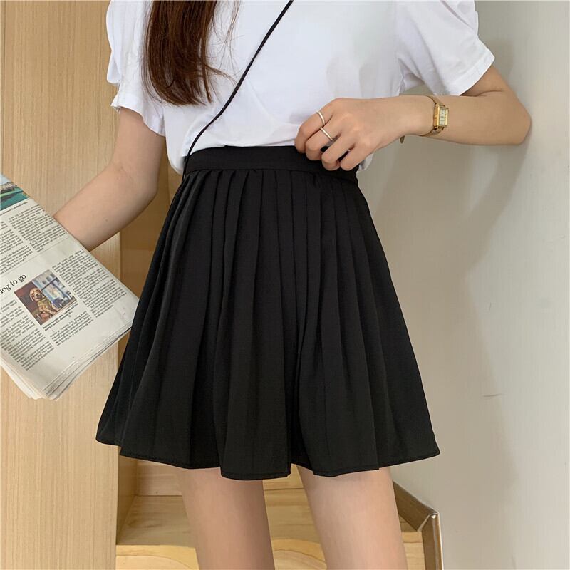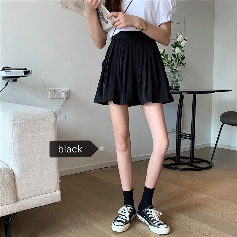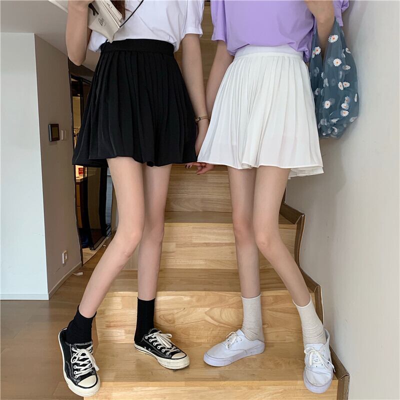 スカート 夏服韓国ファッションショートレディースホワイトハイウェストウェストAラインスタンダードプリーツ レトロ 夏物 スタイル ウエスト Marchs83781976807