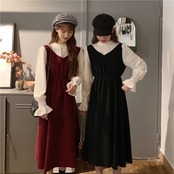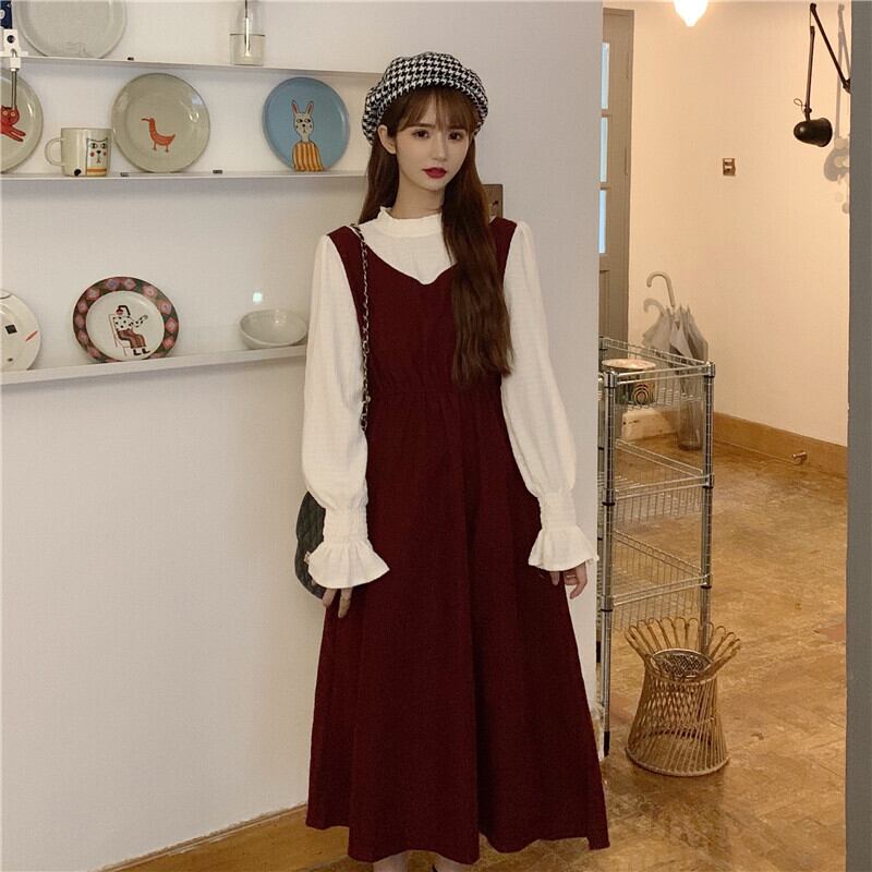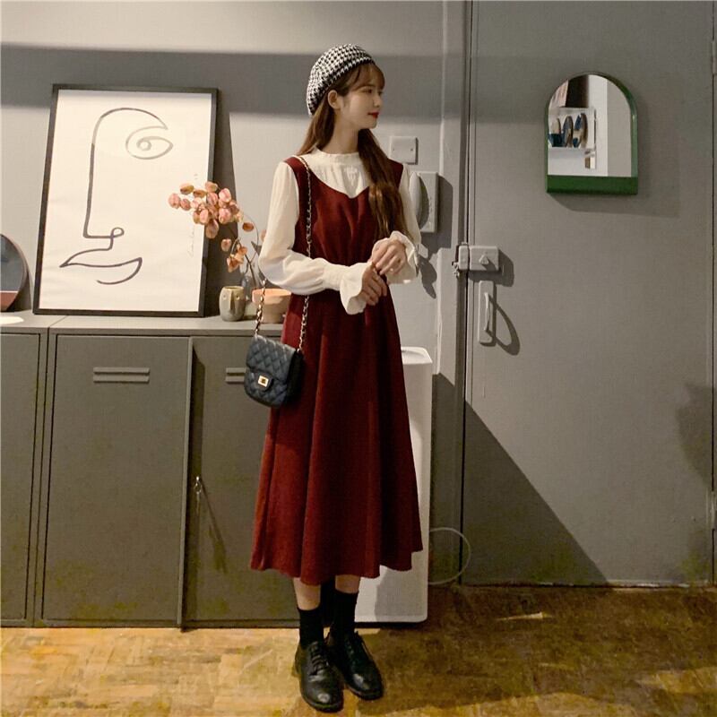 スプリングレディーススカート スタンダードロングスリーブレッドワンピース レトロ 春物 フラワーデザイン Marchs72569963068