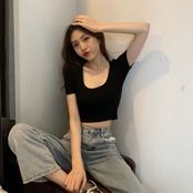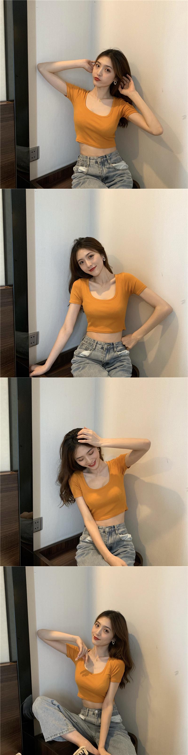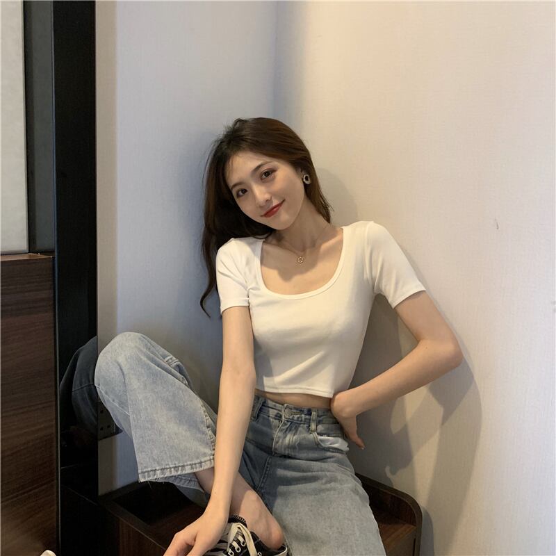 ゆったりシャツ 夏服ハイウェストウェストショートTシャツスリム 夏物 ウエスト Marchs7816718896