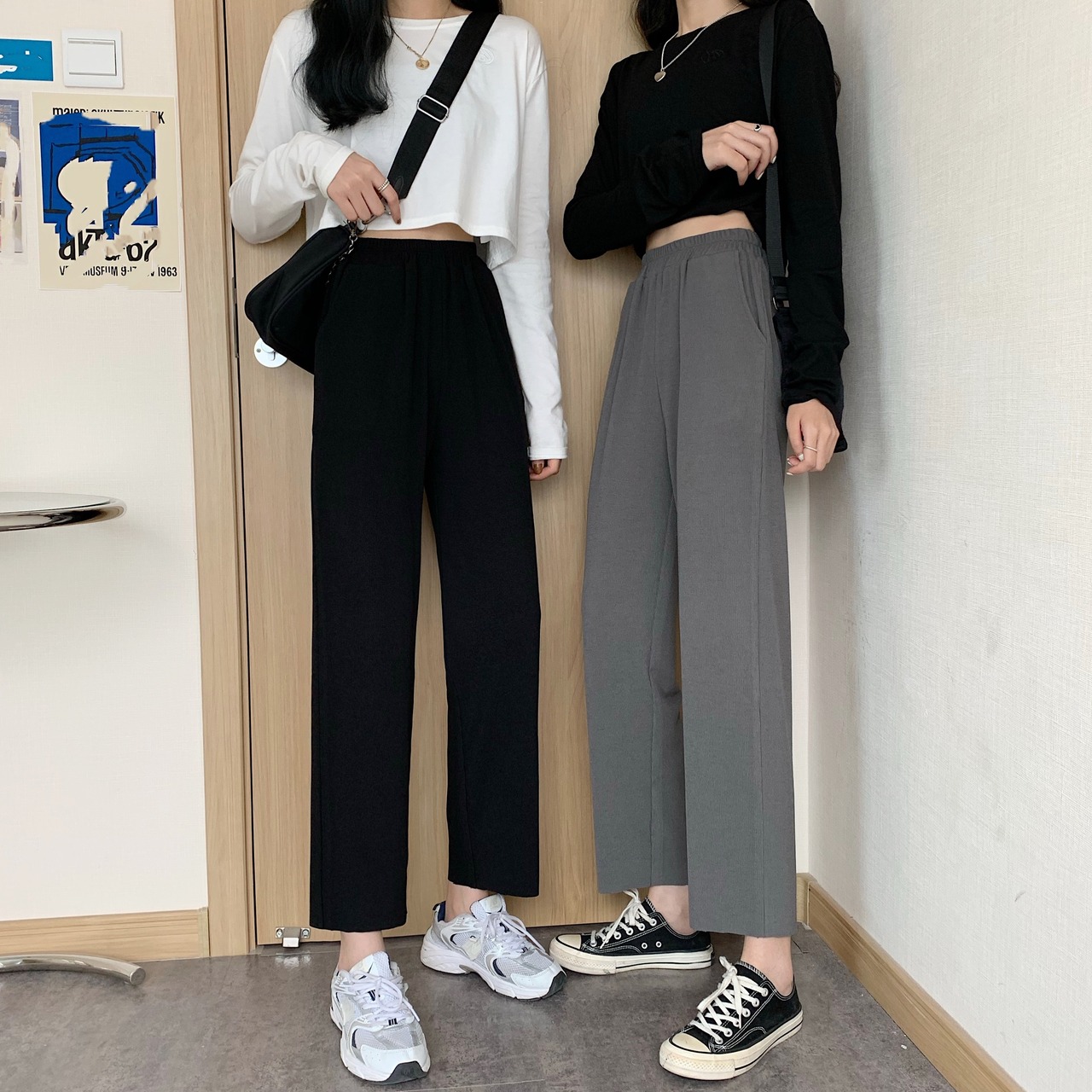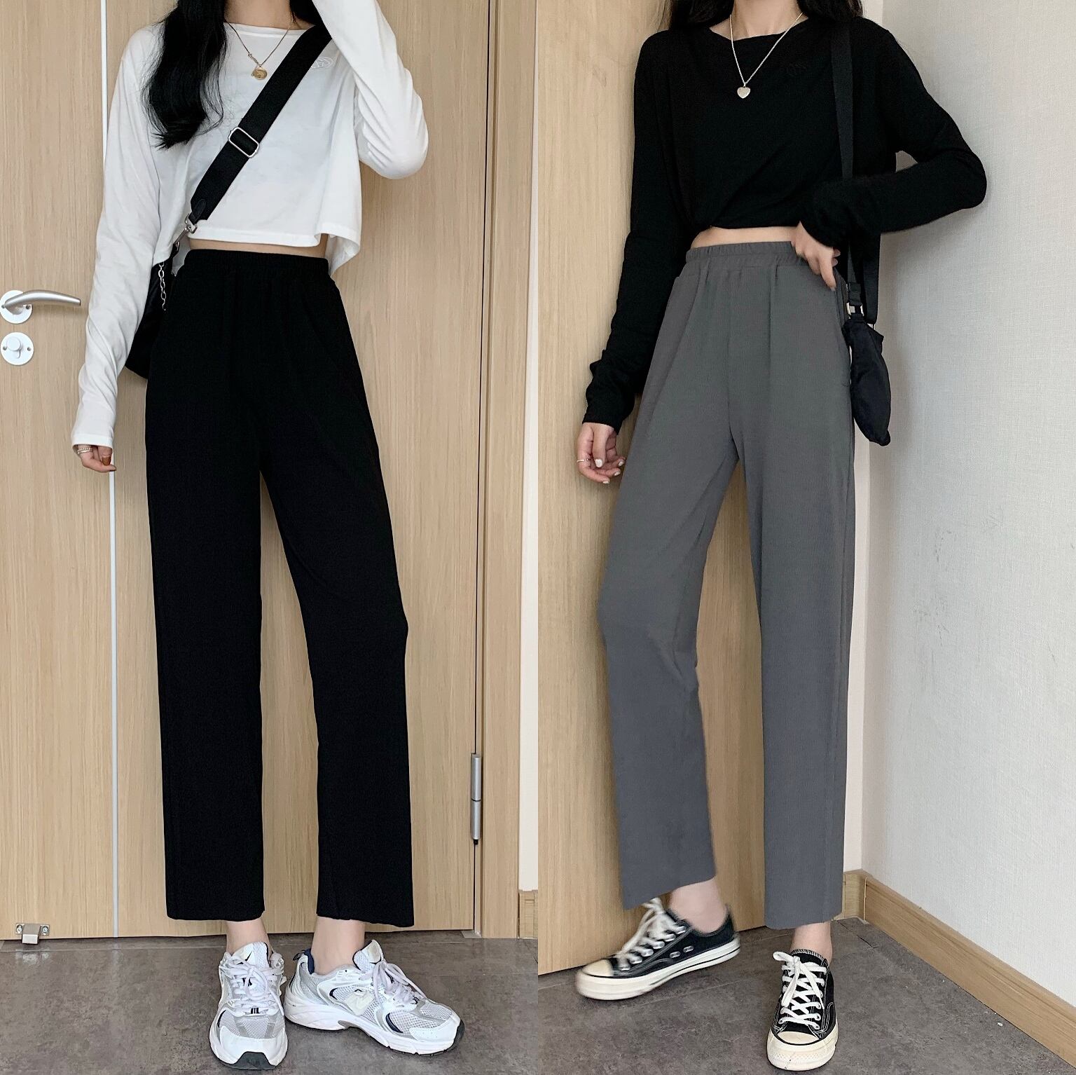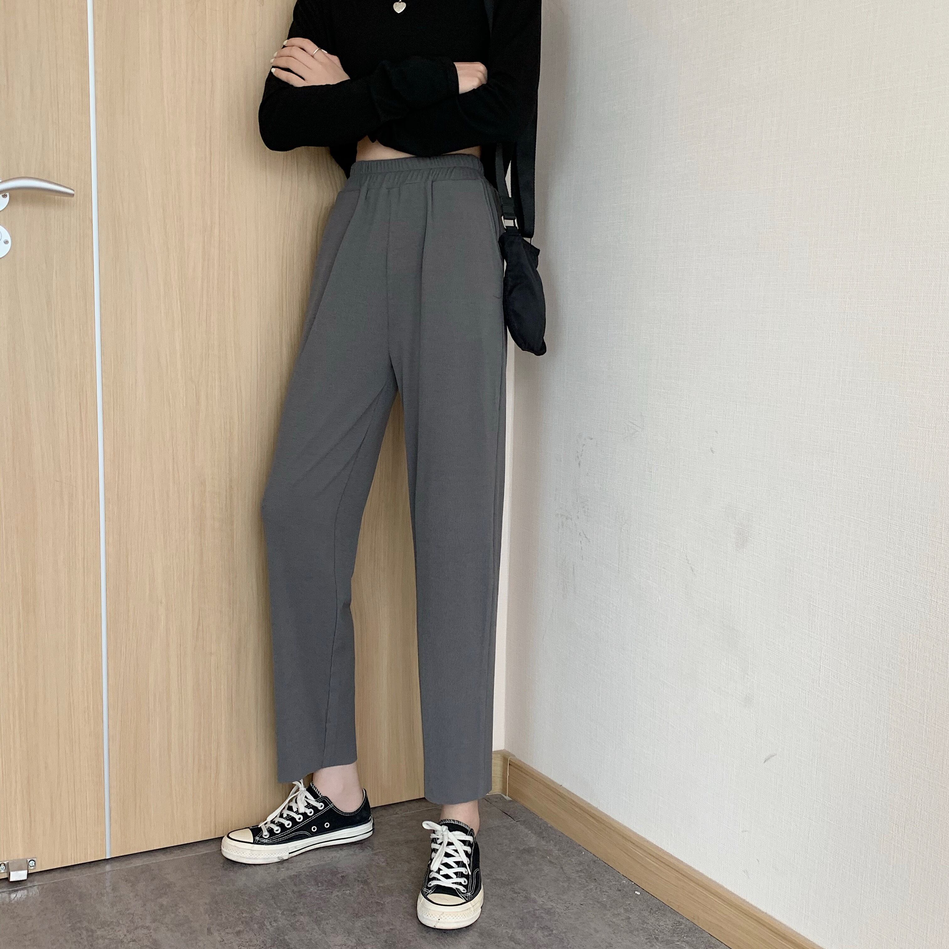 スプリング秋物ルーズブラックパンツ ハイウェストウェスト 春物 オータム ウエスト Marchs62823768369