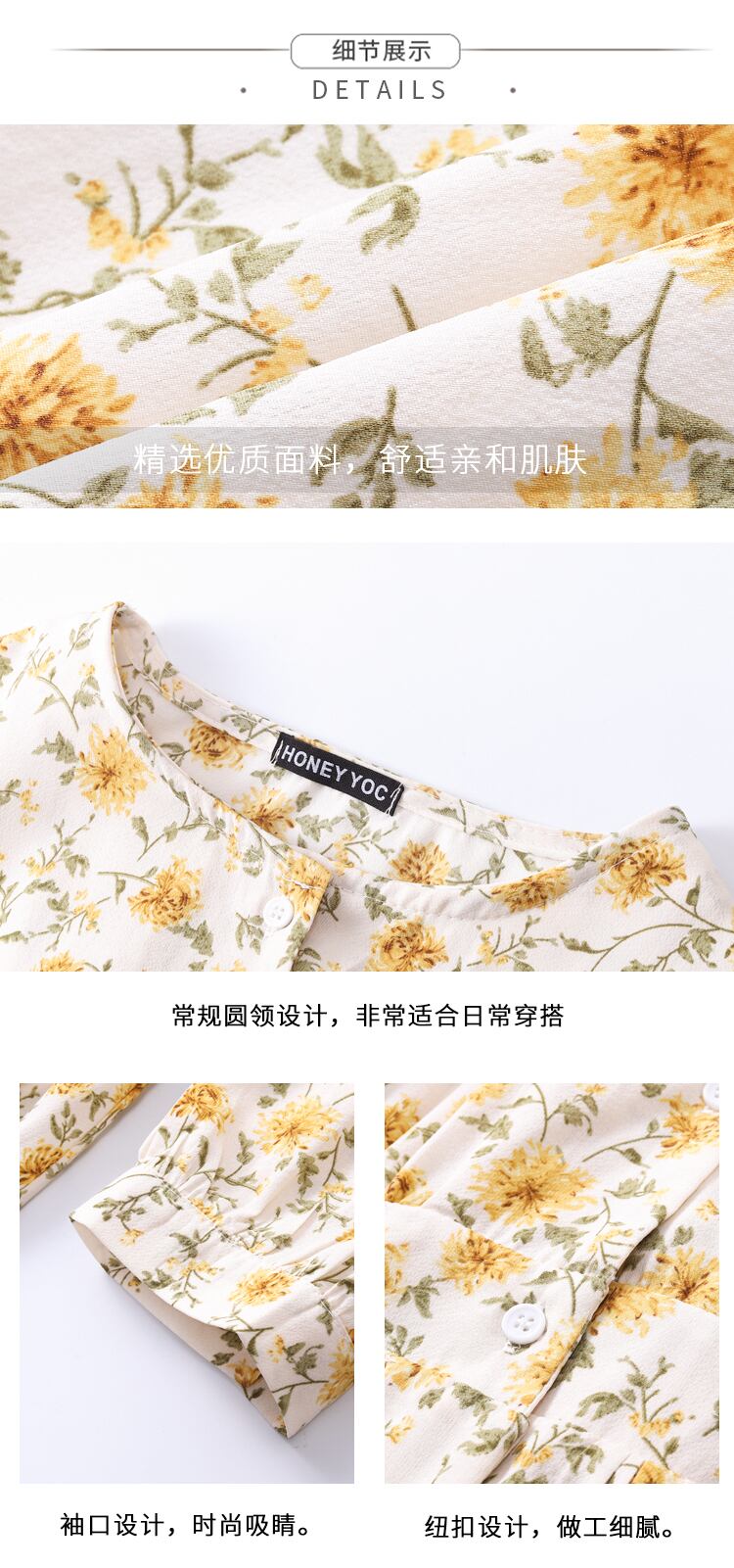 スタンダードフローラルスカート レディーススプリングイエローロングアンクルワンピース レトロ 春物 花柄 Marchs13093205685