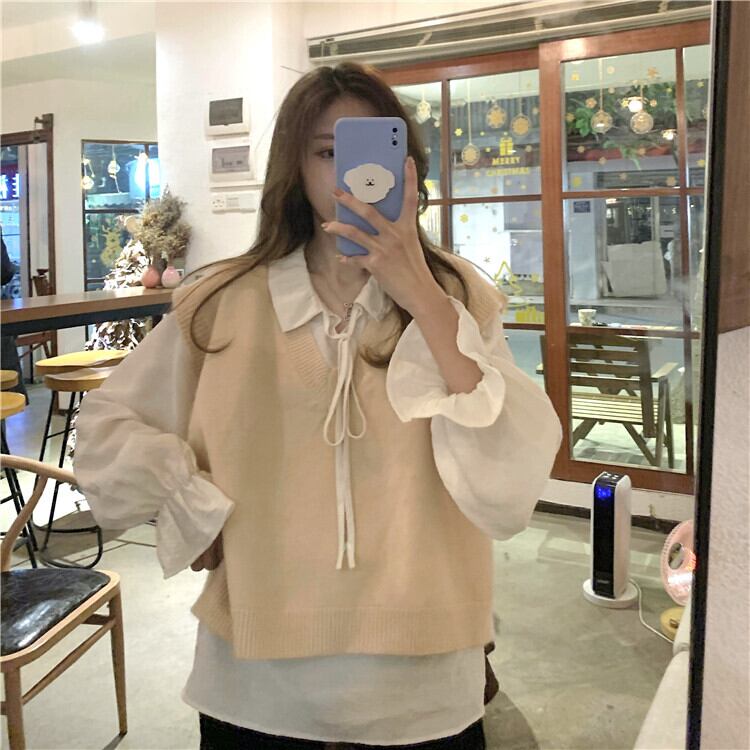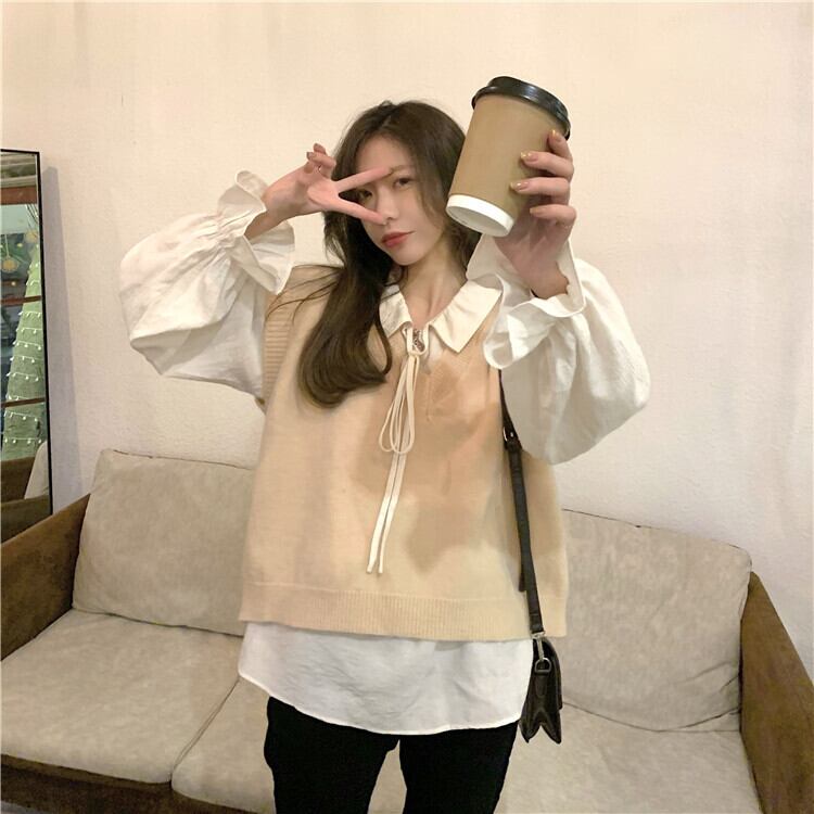 色:カーキベストワンピース,オフホワイトシャツシングル