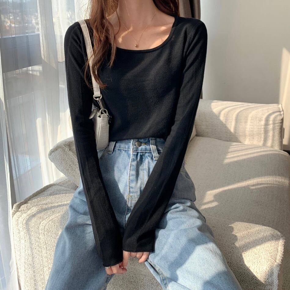 ブラックゆったりシャツ スプリング秋物ベーシックスリムカラー長袖スリーブ ロング 春物 オータム スクウェア Marchs88150703774