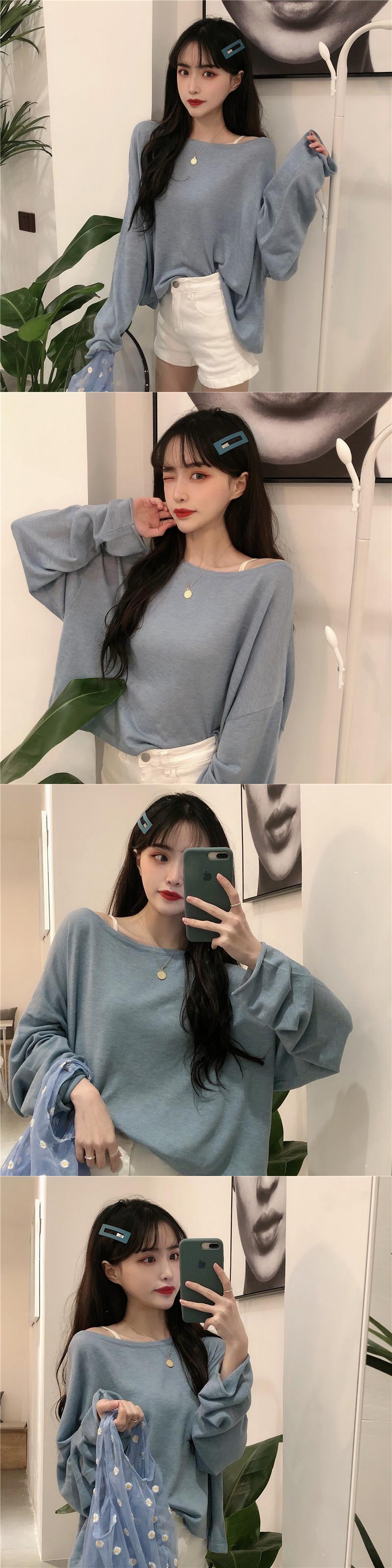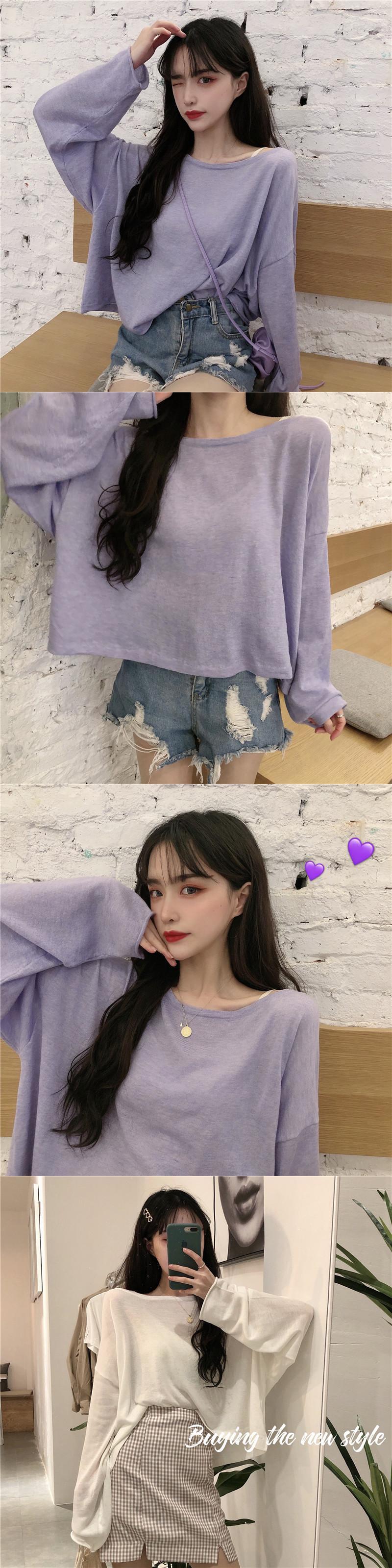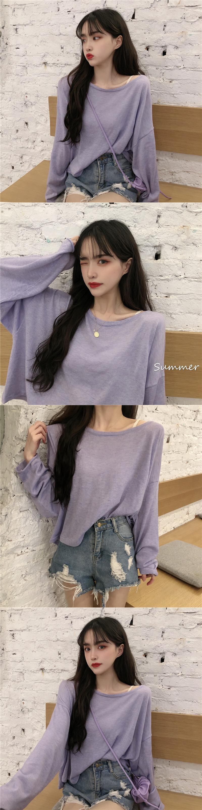 セーター 夏服韓国ファッションルーズ薄手ブラウス ロング 夏物 シルク スタイル 長袖 Marchs12615233120