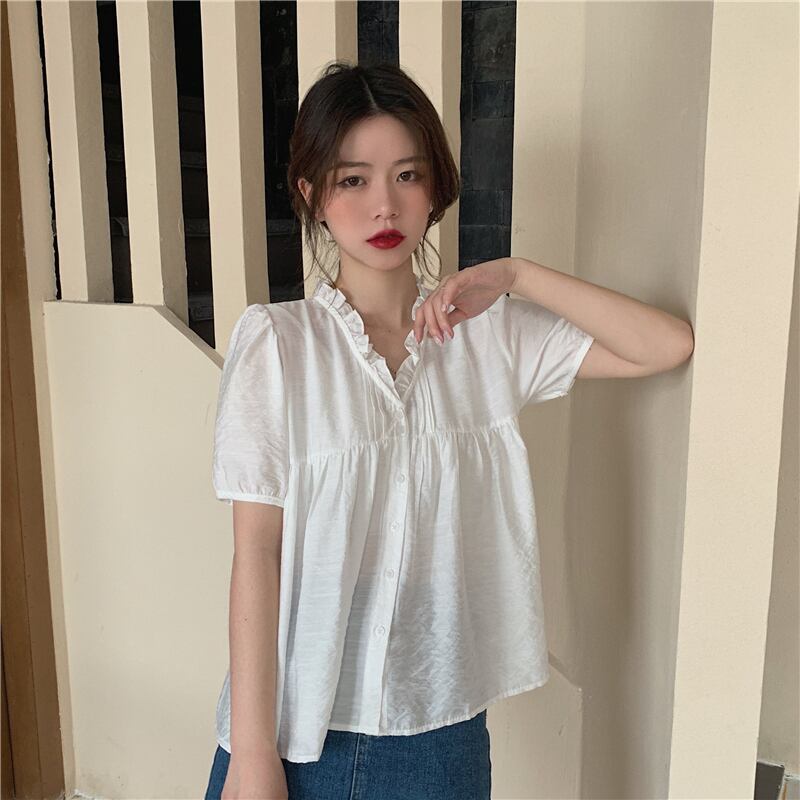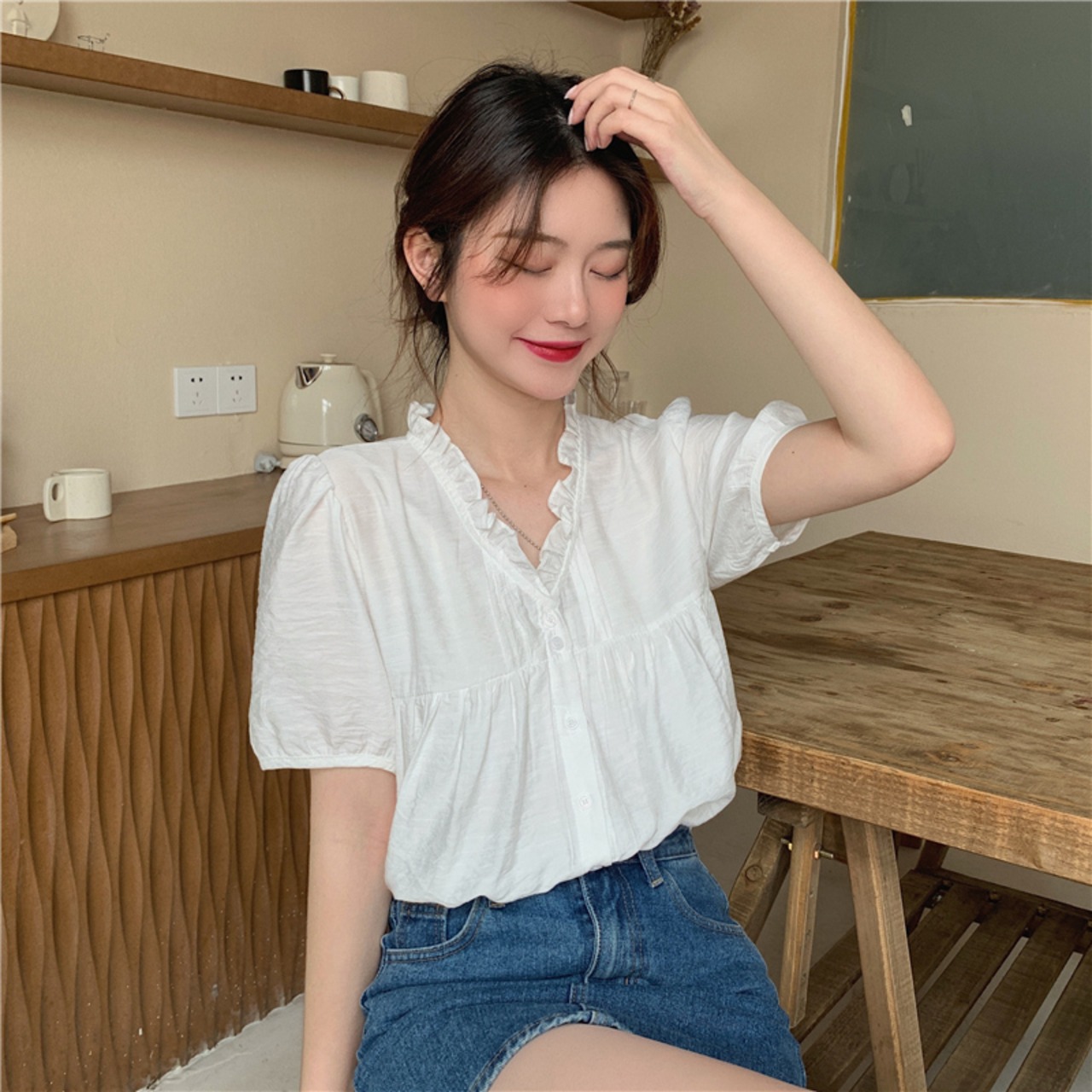 韓国ファッションスタイルジャケット ルーズVネックホワイトシャツ レディース夏服 夏物 Marchs12937388896
