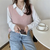 スプリング韓国ファッションVネックノースリーブセーター レディース 春物 スタイル Marchs88377382882