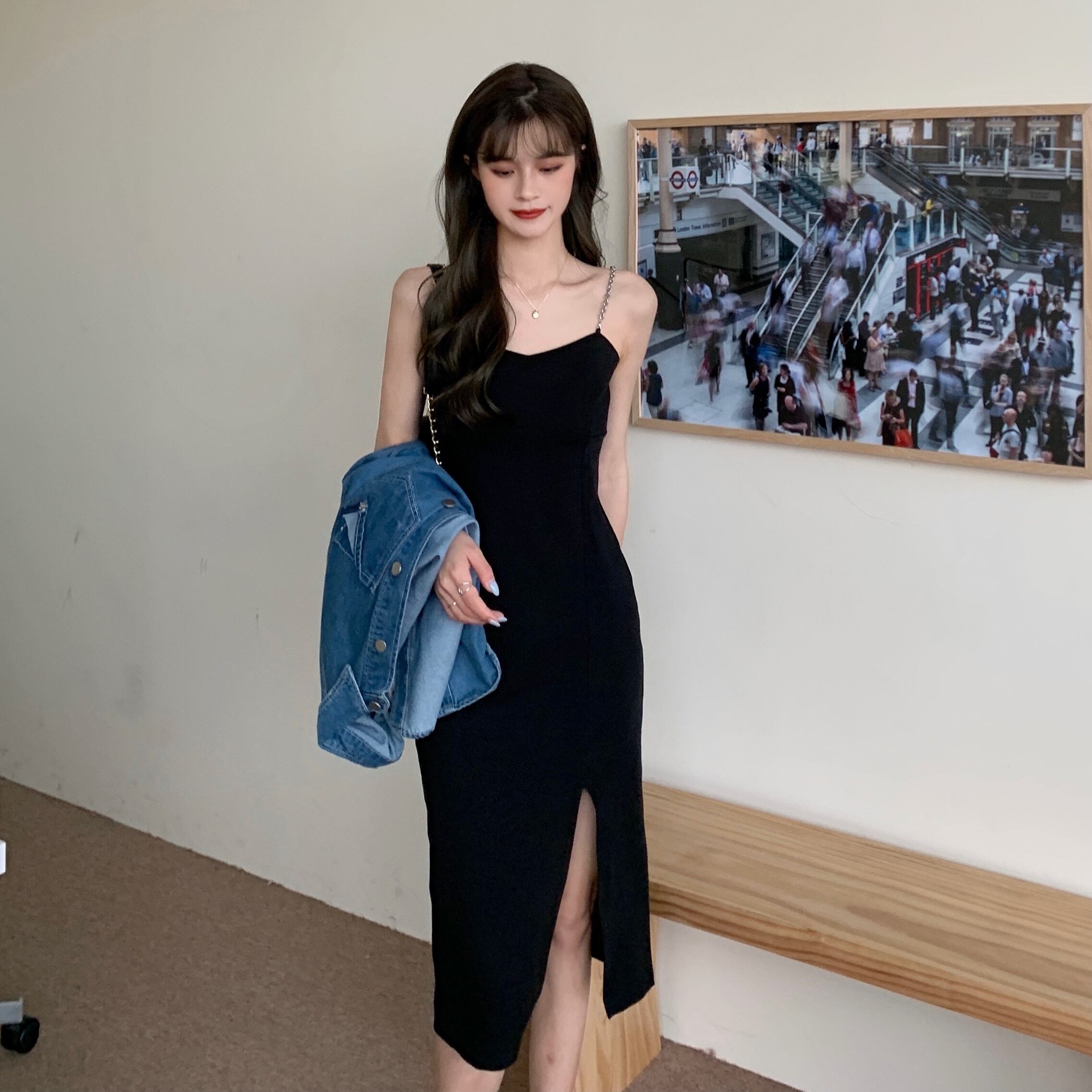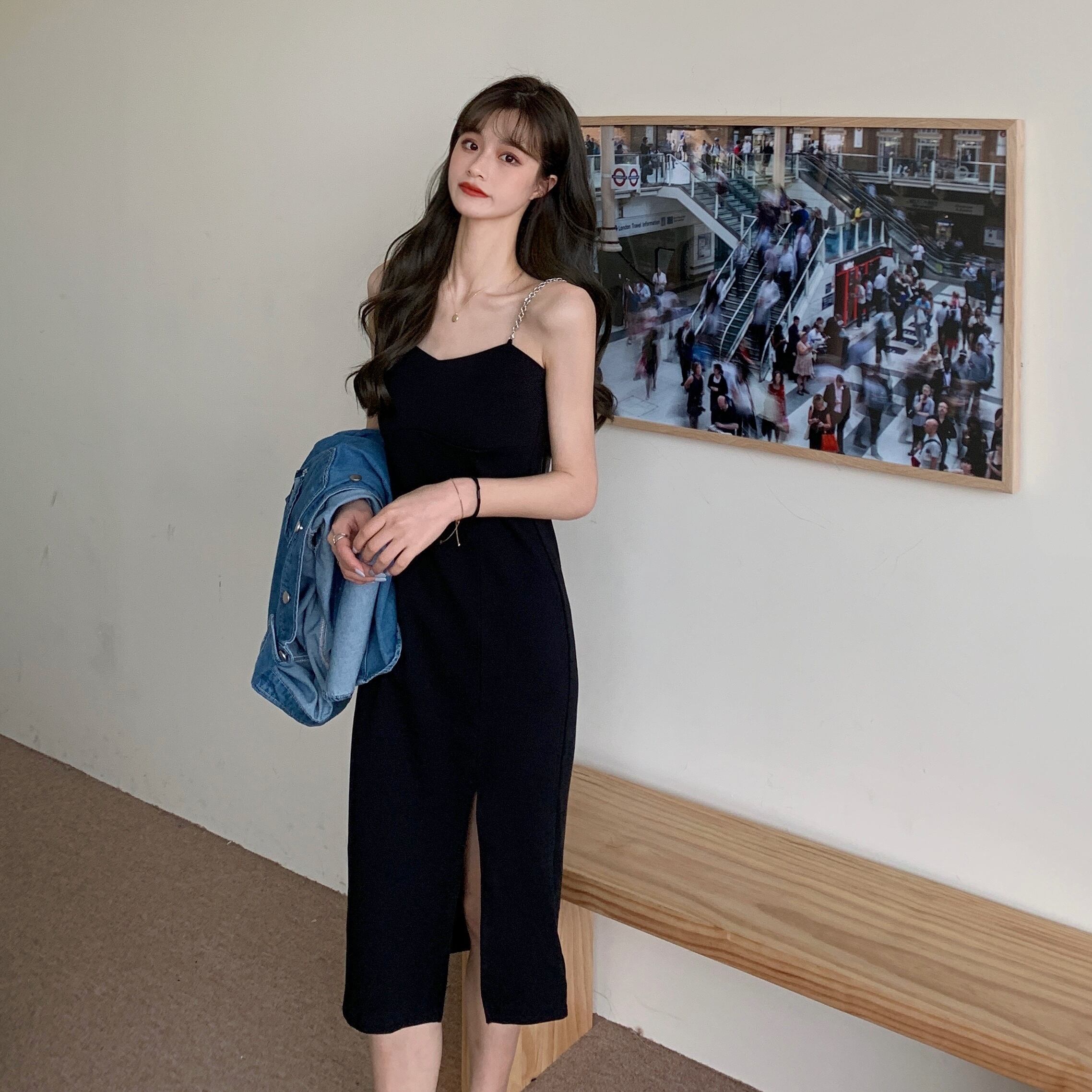 スカート 夏服スリムロングスタイルブラックワンピースレディース 夏物 ミドル丈 Marchs97551373695