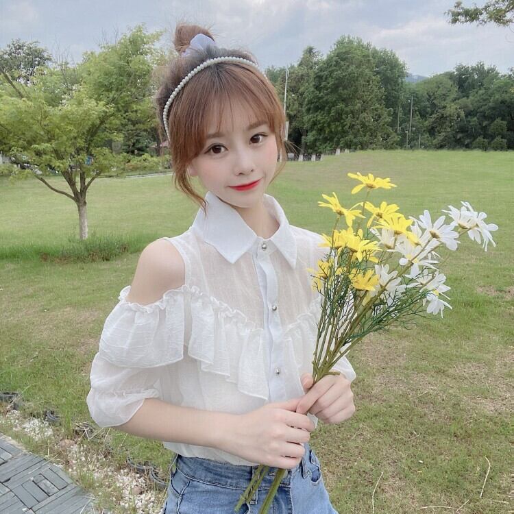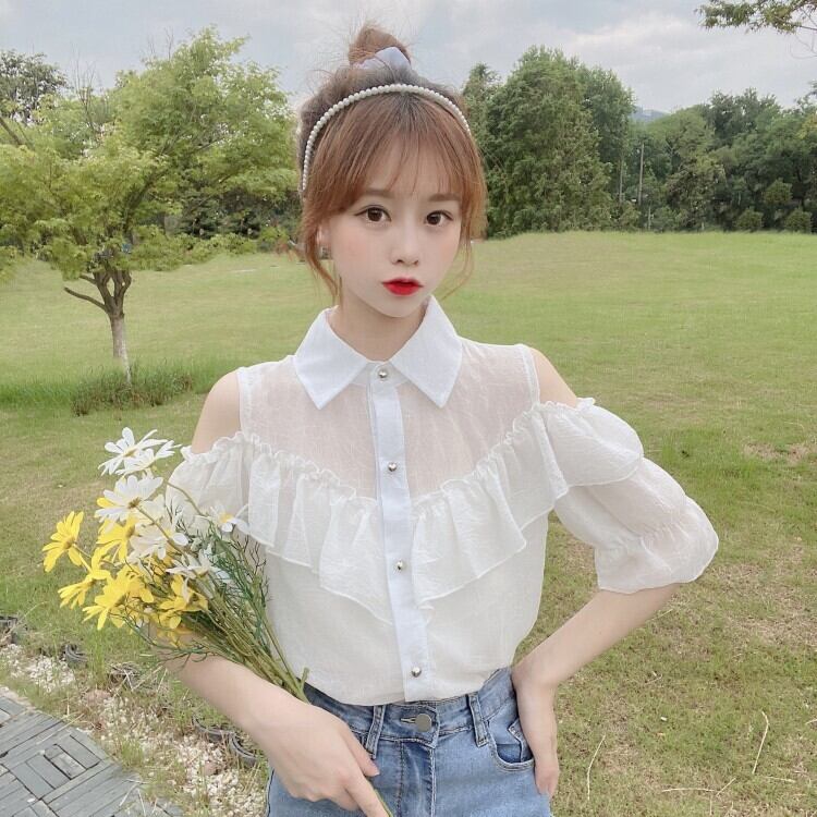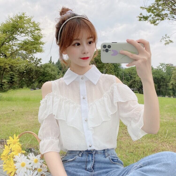 シフォン夏服ストラップレスホワイトレディース ブラウス 夏物 Marchs27694562683