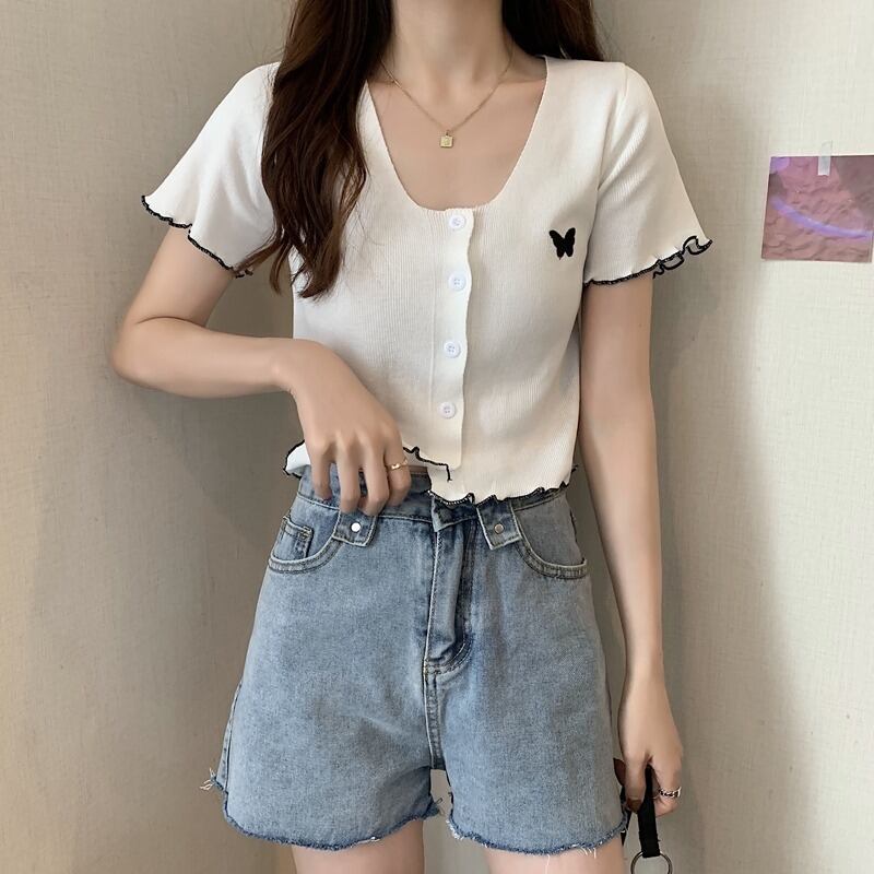 ホワイトTシャツショート夏服Vネックブラウス 夏物 Marchs45541994420